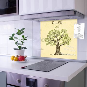 Die banjado Glas Küchenrückwand in verschiedenen Größen mit Motiv Olivenbaum schützt Ihre Küchenfliesen vor Fettspritzern oder Wasserflecken. Der Spritzschutz ist gleichzeitig magnetisch und hält Ihre Rezepte oder Einkaufslisten. 4 Neodym-Magnete und 1 Kreidestift liegen bereits bei. Leuchtende Motive und hochwertiges Material machen den Spritzschutz zum Designobjekt. Das dekorative Glasbild gibt Ihrer Küche ein individuelles Erscheinungsbild. Abgerundete Kanten und Sicherheitsglas sorgen für einen sicheren Einsatz.