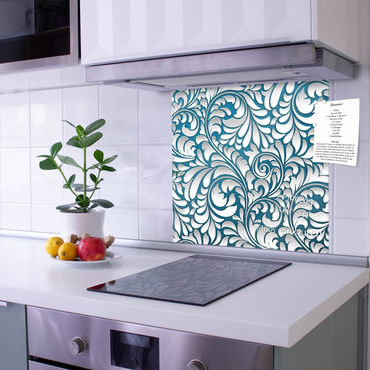 Die Küchenrückwand ist eine elegante Mehrzwecktafel: als Spritzschutz hinter Herd oder Waschbecken, hält Notizen wie ein Memoboard, ist beschreibbar mit Kreidestiften oder Whiteboard-Markern, sieht umwerfend als Glasbild aus. Sie besteht aus gehärtetem Glas, die Rückwand aus einem magnetischen Stahlblech. Durch die superflache Bauweise haben Sie die Wahl aus einer Vielzahl von Befestigungsmöglichkeiten. Sie können die Küchenrückwand mit einem Montagekleber superflach an die Wand kleben oder Sie wählen eines unserer passenden Befestigungssets, welches eine optimale Montage garantiert. Die Küchenrückwand besteht aus zertifiziertem Sicherheitsglas. Durch die mitgelieferten 4 Neodym-Magnete ist Ihre Glas Magnettafel sofort einsatzbereit.