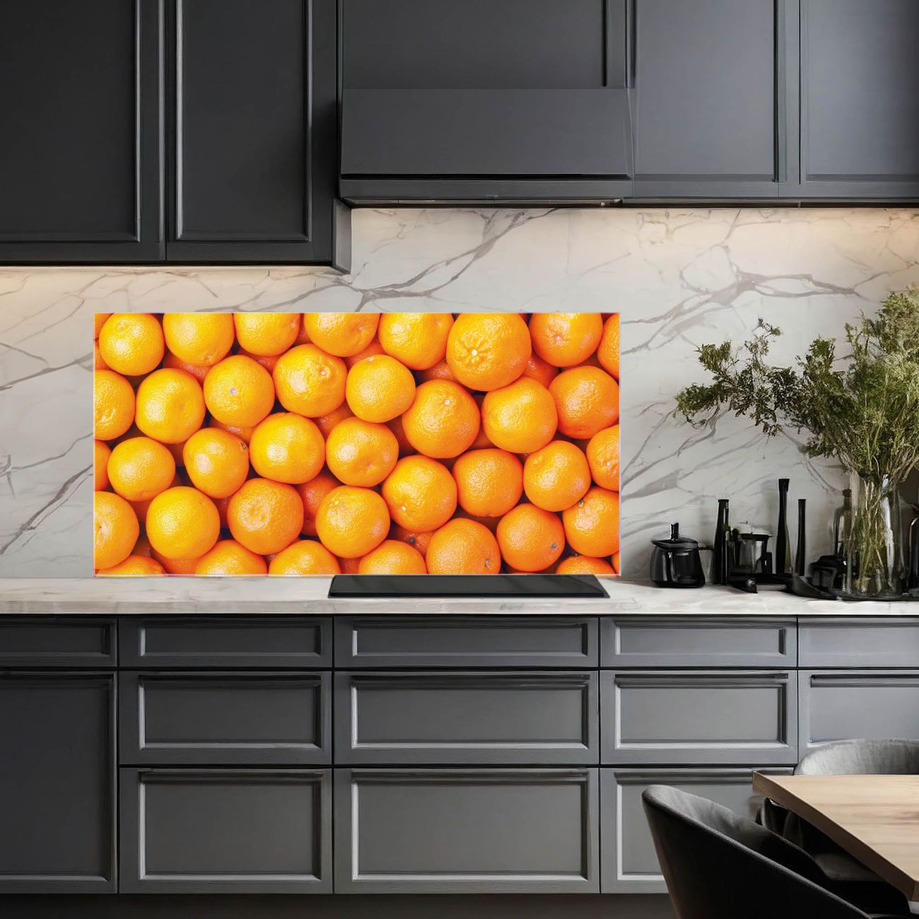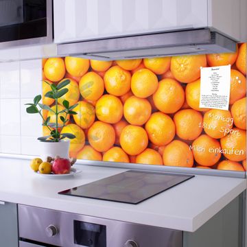 Die banjado Glas Küchenrückwand in verschiedenen Größen mit Motiv Orangen schützt Ihre Küchenfliesen vor Fettspritzern oder Wasserflecken. Der Spritzschutz ist gleichzeitig magnetisch und hält Ihre Rezepte oder Einkaufslisten. 4 Neodym-Magnete und 1 Kreidestift liegen bereits bei. Leuchtende Motive und hochwertiges Material machen den Spritzschutz zum Designobjekt. Das dekorative Glasbild gibt Ihrer Küche ein individuelles Erscheinungsbild. Abgerundete Kanten und Sicherheitsglas sorgen für einen sicheren Einsatz.