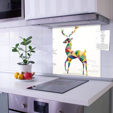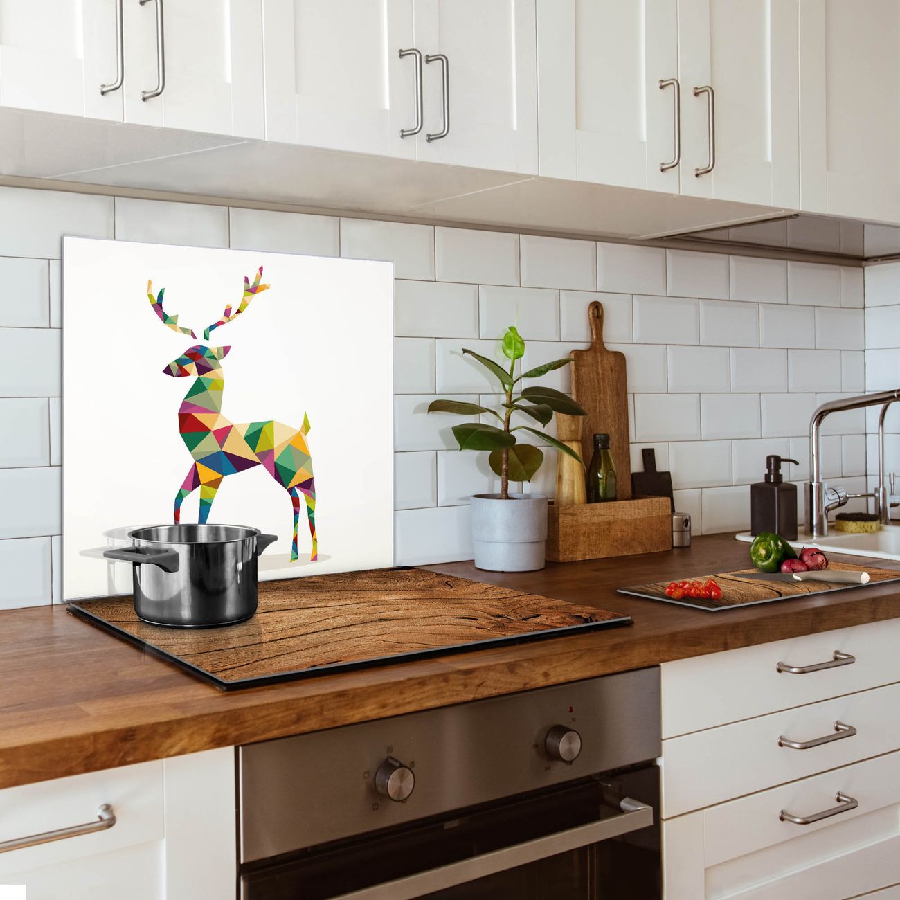 Die banjado Glas Küchenrückwand in verschiedenen Größen mit Motiv Origami Hirsch schützt Ihre Küchenfliesen vor Fettspritzern oder Wasserflecken. Der Spritzschutz ist gleichzeitig magnetisch und hält Ihre Rezepte oder Einkaufslisten. 4 Neodym-Magnete und 1 Kreidestift liegen bereits bei. Leuchtende Motive und hochwertiges Material machen den Spritzschutz zum Designobjekt. Das dekorative Glasbild gibt Ihrer Küche ein individuelles Erscheinungsbild. Abgerundete Kanten und Sicherheitsglas sorgen für einen sicheren Einsatz.