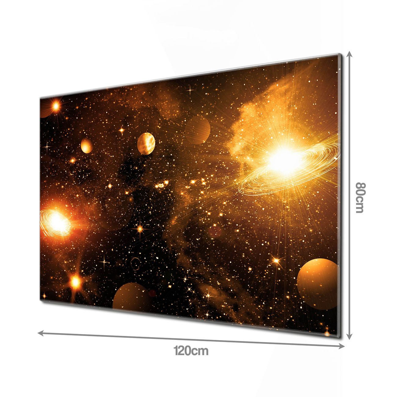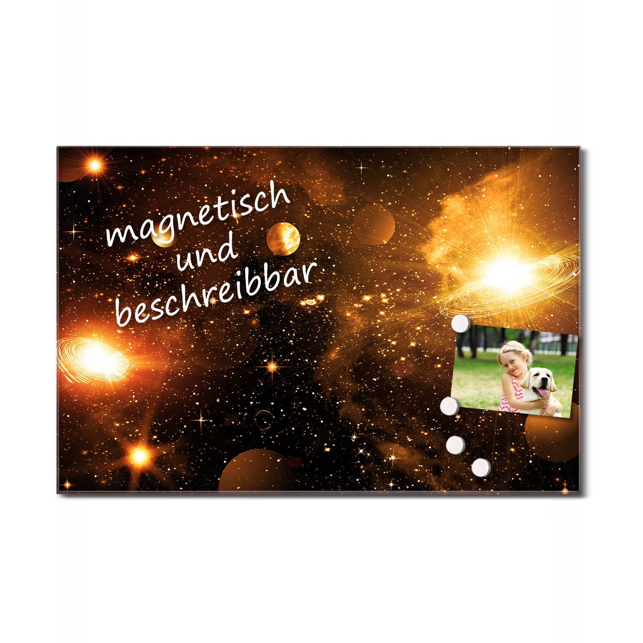 Die banjado Glas Küchenrückwand in verschiedenen Größen mit Motiv Outer Space schützt Ihre Küchenfliesen vor Fettspritzern oder Wasserflecken. Der Spritzschutz ist gleichzeitig magnetisch und hält Ihre Rezepte oder Einkaufslisten. 4 Neodym-Magnete und 1 Kreidestift liegen bereits bei. Leuchtende Motive und hochwertiges Material machen den Spritzschutz zum Designobjekt. Das dekorative Glasbild gibt Ihrer Küche ein individuelles Erscheinungsbild. Abgerundete Kanten und Sicherheitsglas sorgen für einen sicheren Einsatz.
