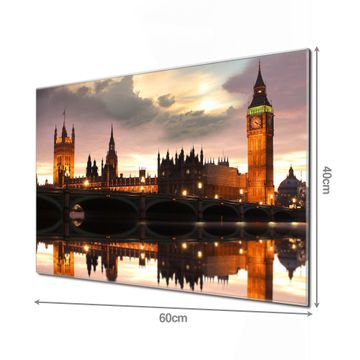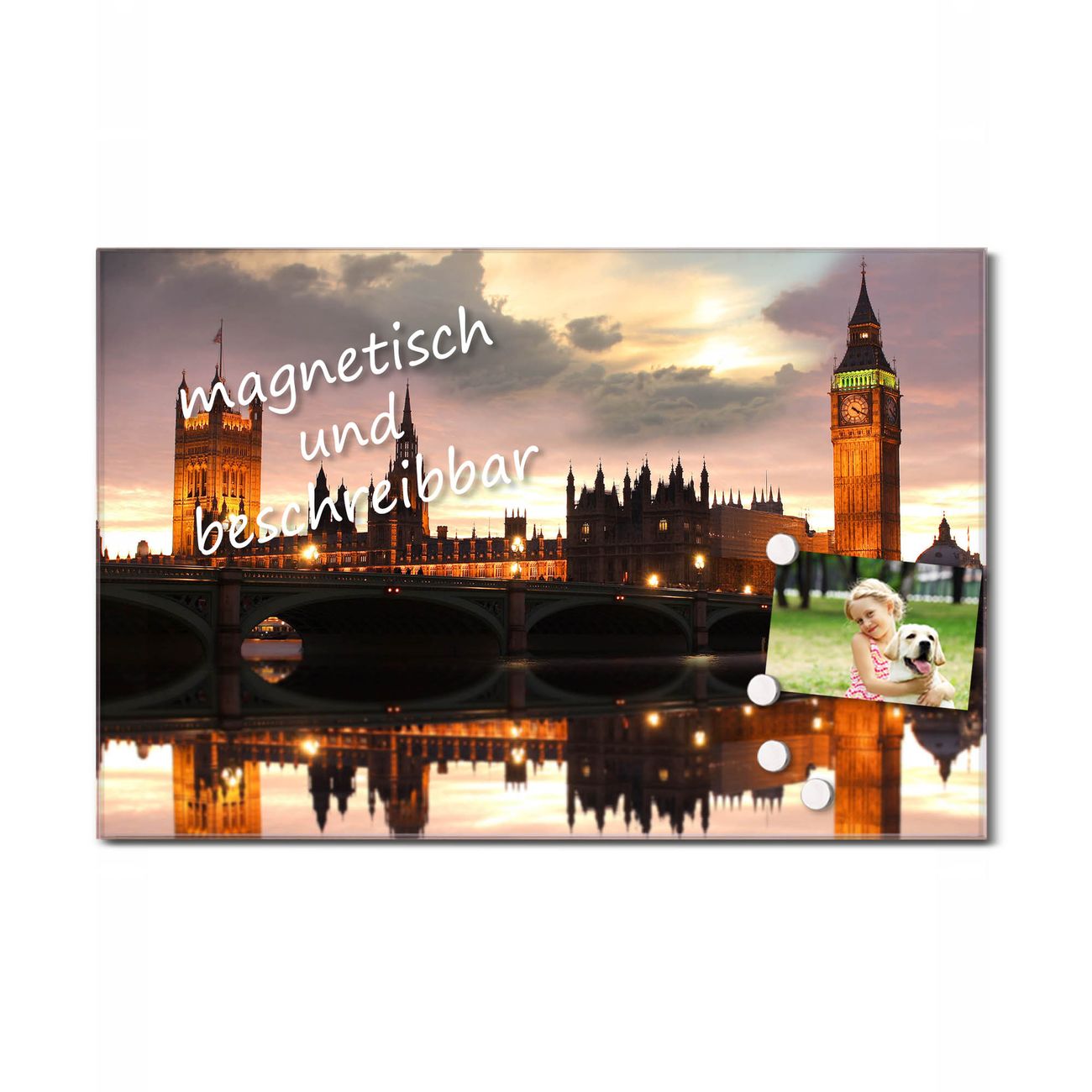 Material  4mm Sicherheitsglas mit Metallrückwand Eigenschaften  beschreibbar, magnetisch, kratzfest Maße  40x60x0,6cm, 3,6 kg schwer Motiv  Nummer 10205 Palace of Westminster Zubehör  inklusive 4 Neodym-Magnete
