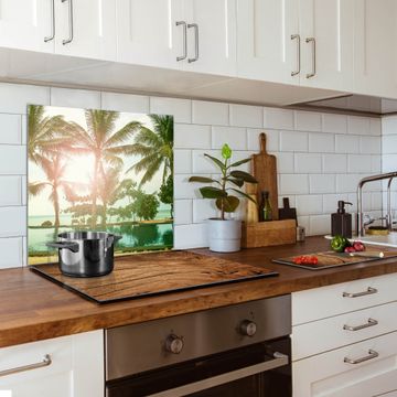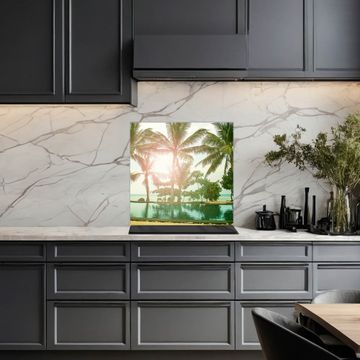 Die banjado Glas Küchenrückwand in verschiedenen Größen mit Motiv Palmen schützt Ihre Küchenfliesen vor Fettspritzern oder Wasserflecken. Der Spritzschutz ist gleichzeitig magnetisch und hält Ihre Rezepte oder Einkaufslisten. 4 Neodym-Magnete und 1 Kreidestift liegen bereits bei. Leuchtende Motive und hochwertiges Material machen den Spritzschutz zum Designobjekt. Das dekorative Glasbild gibt Ihrer Küche ein individuelles Erscheinungsbild. Abgerundete Kanten und Sicherheitsglas sorgen für einen sicheren Einsatz.