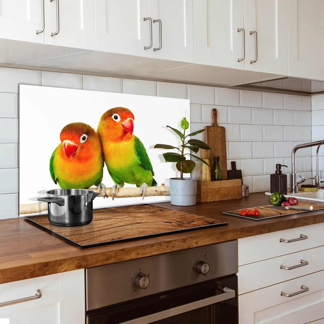 Die banjado Glas Küchenrückwand in verschiedenen Größen mit Motiv Papageien schützt Ihre Küchenfliesen vor Fettspritzern oder Wasserflecken. Der Spritzschutz ist gleichzeitig magnetisch und hält Ihre Rezepte oder Einkaufslisten. 4 Neodym-Magnete und 1 Kreidestift liegen bereits bei. Leuchtende Motive und hochwertiges Material machen den Spritzschutz zum Designobjekt. Das dekorative Glasbild gibt Ihrer Küche ein individuelles Erscheinungsbild. Abgerundete Kanten und Sicherheitsglas sorgen für einen sicheren Einsatz.