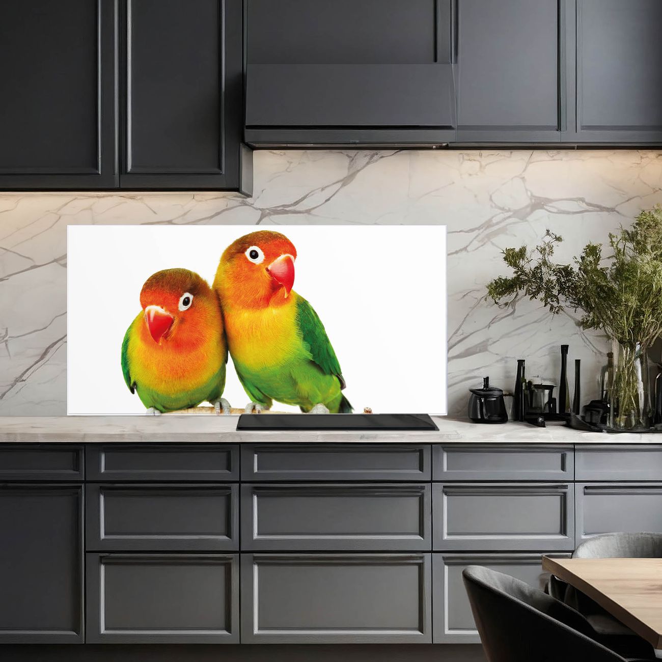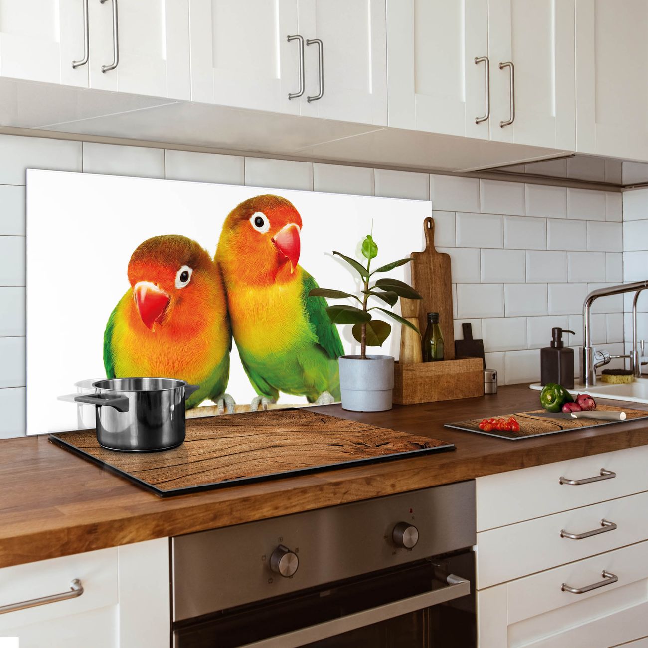 Die banjado Glas Küchenrückwand in verschiedenen Größen mit Motiv Papageien schützt Ihre Küchenfliesen vor Fettspritzern oder Wasserflecken. Der Spritzschutz ist gleichzeitig magnetisch und hält Ihre Rezepte oder Einkaufslisten. 4 Neodym-Magnete und 1 Kreidestift liegen bereits bei. Leuchtende Motive und hochwertiges Material machen den Spritzschutz zum Designobjekt. Das dekorative Glasbild gibt Ihrer Küche ein individuelles Erscheinungsbild. Abgerundete Kanten und Sicherheitsglas sorgen für einen sicheren Einsatz.