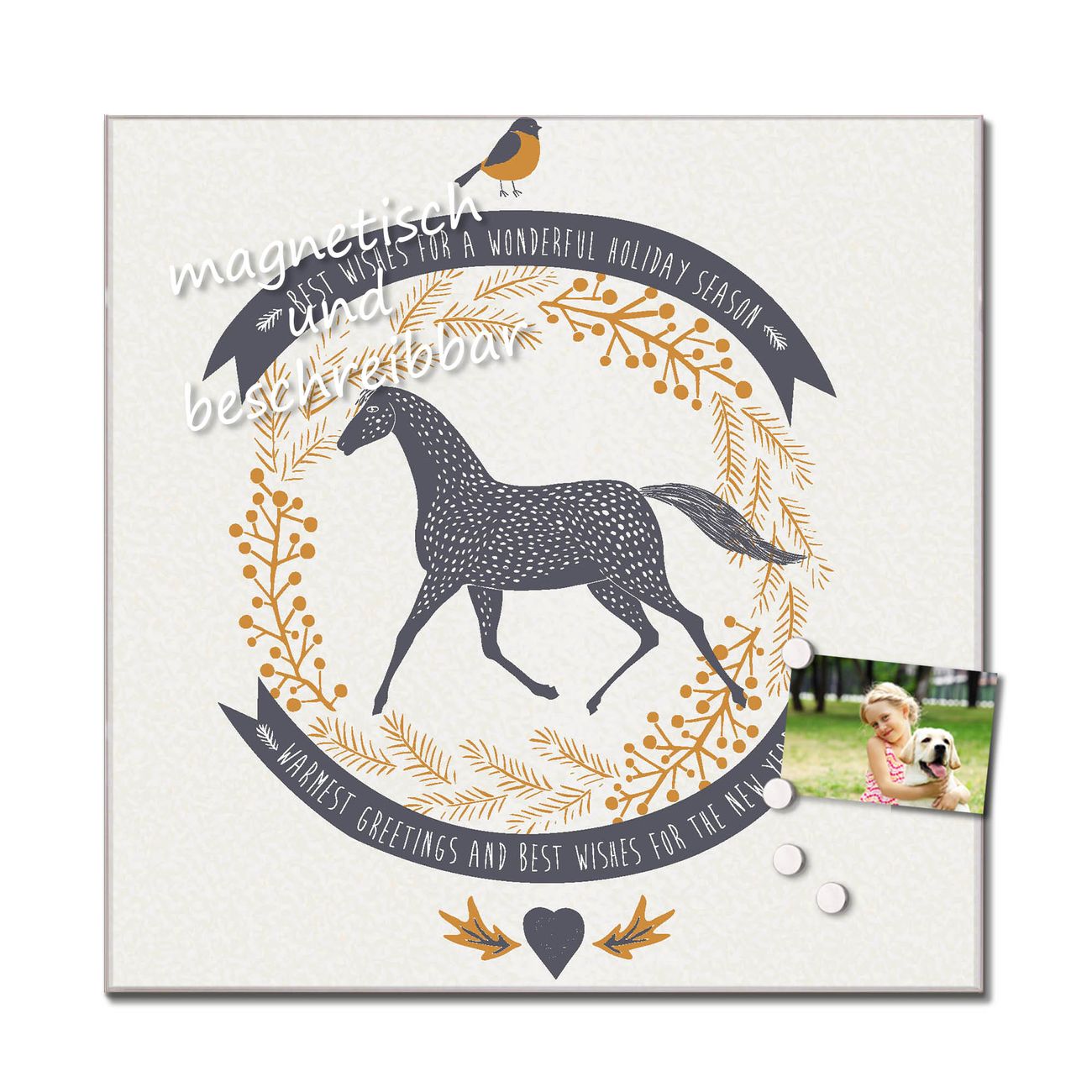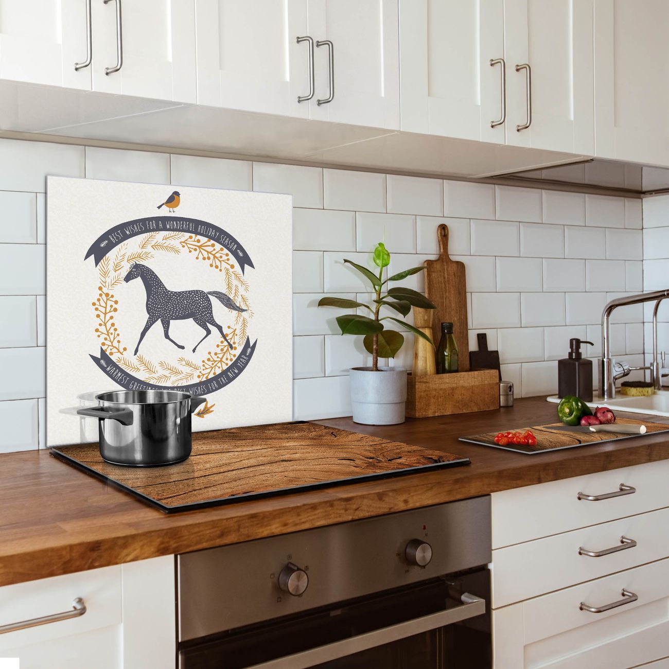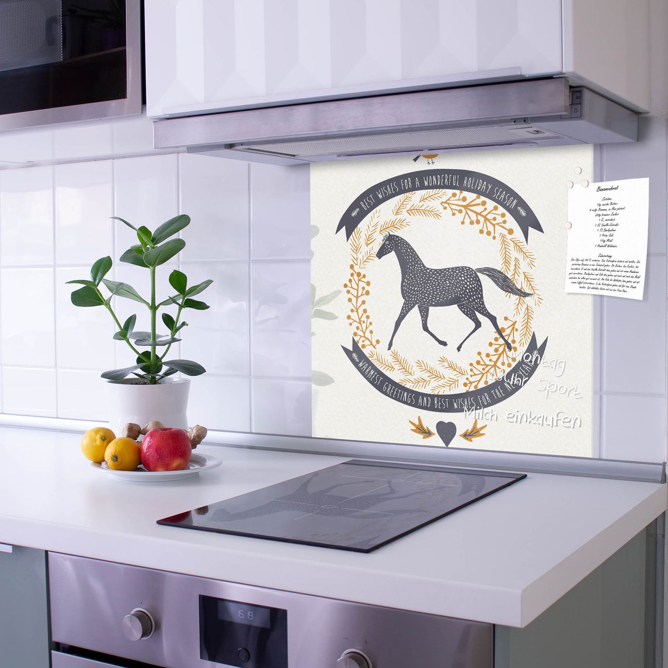 Die banjado Glas Küchenrückwand in verschiedenen Größen mit Motiv Pferd und Vogel schützt Ihre Küchenfliesen vor Fettspritzern oder Wasserflecken. Der Spritzschutz ist gleichzeitig magnetisch und hält Ihre Rezepte oder Einkaufslisten. 4 Neodym-Magnete und 1 Kreidestift liegen bereits bei. Leuchtende Motive und hochwertiges Material machen den Spritzschutz zum Designobjekt. Das dekorative Glasbild gibt Ihrer Küche ein individuelles Erscheinungsbild. Abgerundete Kanten und Sicherheitsglas sorgen für einen sicheren Einsatz.