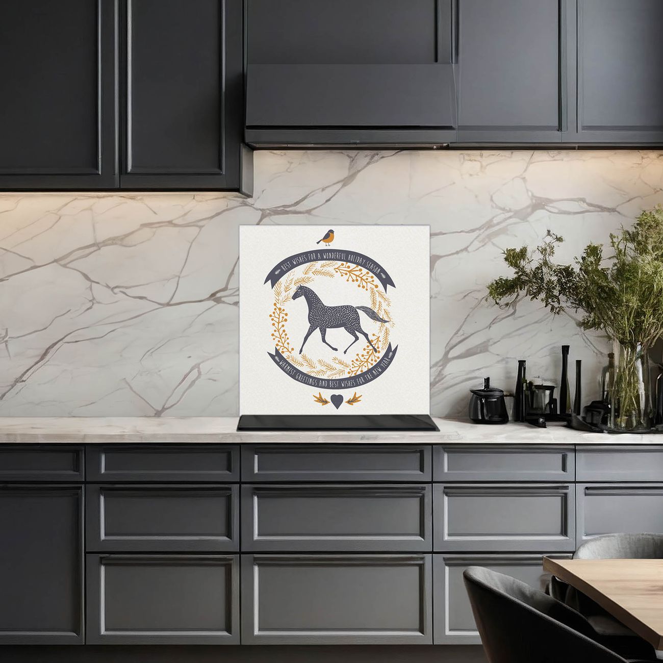 Küchenrückwand Glas Motiv Pferd und Vogel