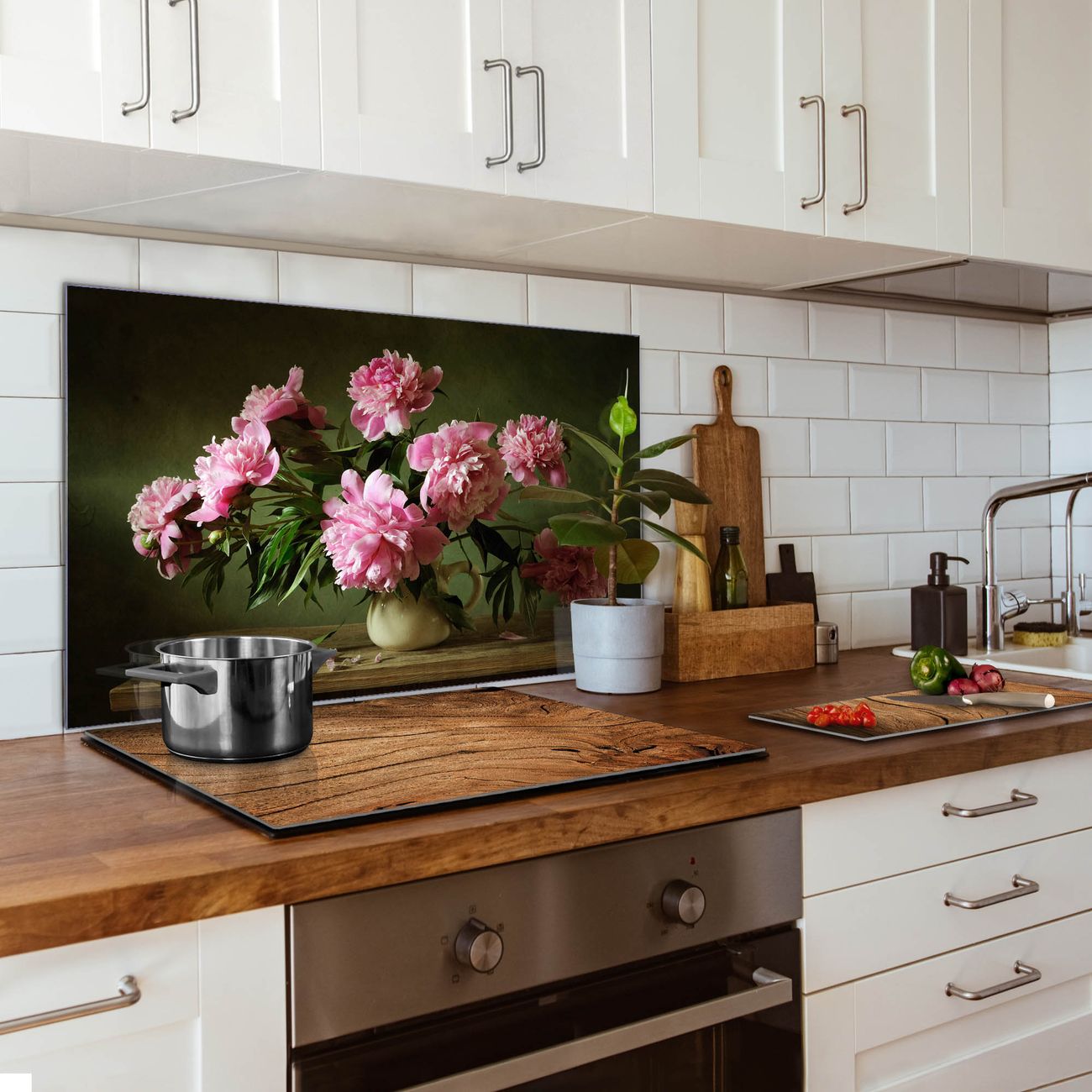 Küchenrückwand Glas Motiv Pinke Pfingstrosen