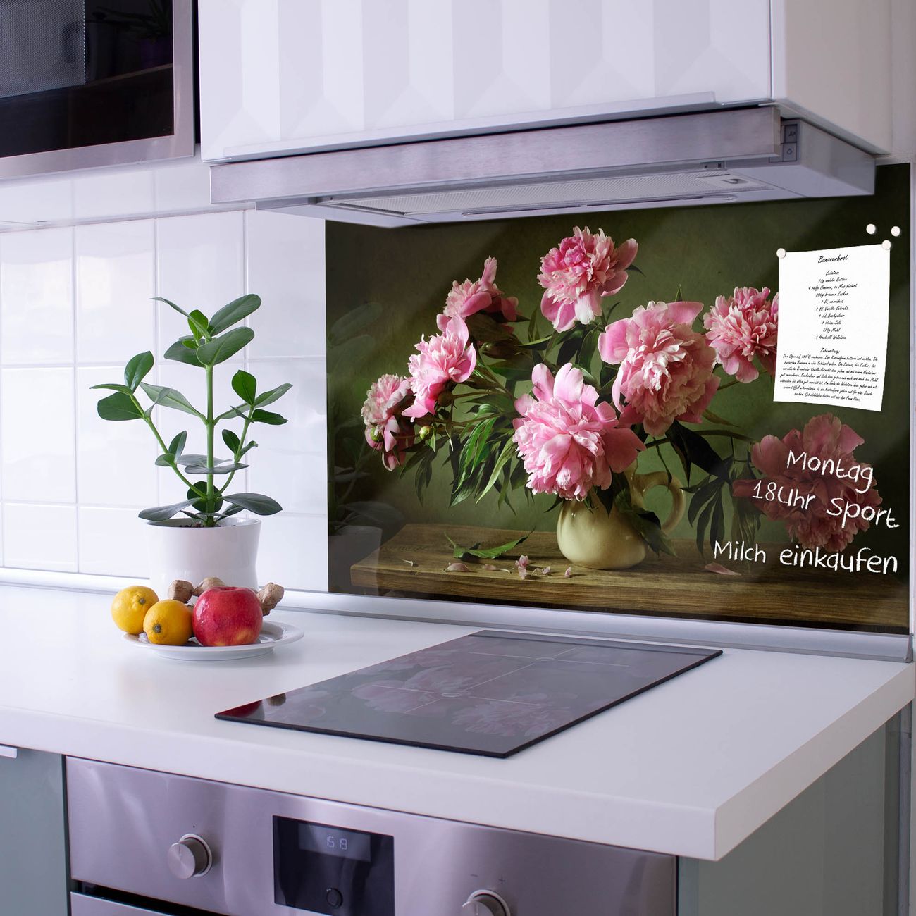 Die Küchenrückwand ist eine elegante Mehrzwecktafel: als Spritzschutz hinter Herd oder Waschbecken, hält Notizen wie ein Memoboard, ist beschreibbar mit Kreidestiften oder Whiteboard-Markern, sieht umwerfend als Glasbild aus. Sie besteht aus gehärtetem Glas, die Rückwand aus einem magnetischen Stahlblech. Durch die superflache Bauweise haben Sie die Wahl aus einer Vielzahl von Befestigungsmöglichkeiten. Sie können die Küchenrückwand mit einem Montagekleber superflach an die Wand kleben oder Sie wählen eines unserer passenden Befestigungssets, welches eine optimale Montage garantiert. Die Küchenrückwand besteht aus zertifiziertem Sicherheitsglas. Durch die mitgelieferten 4 Neodym-Magnete ist Ihre Glas Magnettafel sofort einsatzbereit.