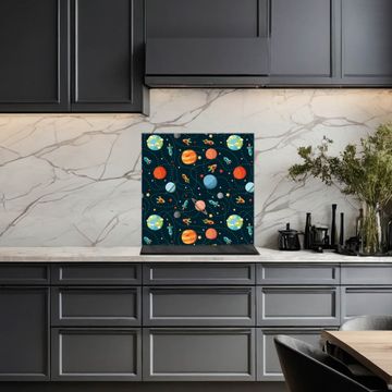 Die banjado Glas Küchenrückwand in verschiedenen Größen mit Motiv Planet Cruiser schützt Ihre Küchenfliesen vor Fettspritzern oder Wasserflecken. Der Spritzschutz ist gleichzeitig magnetisch und hält Ihre Rezepte oder Einkaufslisten. 4 Neodym-Magnete und 1 Kreidestift liegen bereits bei. Leuchtende Motive und hochwertiges Material machen den Spritzschutz zum Designobjekt. Das dekorative Glasbild gibt Ihrer Küche ein individuelles Erscheinungsbild. Abgerundete Kanten und Sicherheitsglas sorgen für einen sicheren Einsatz.