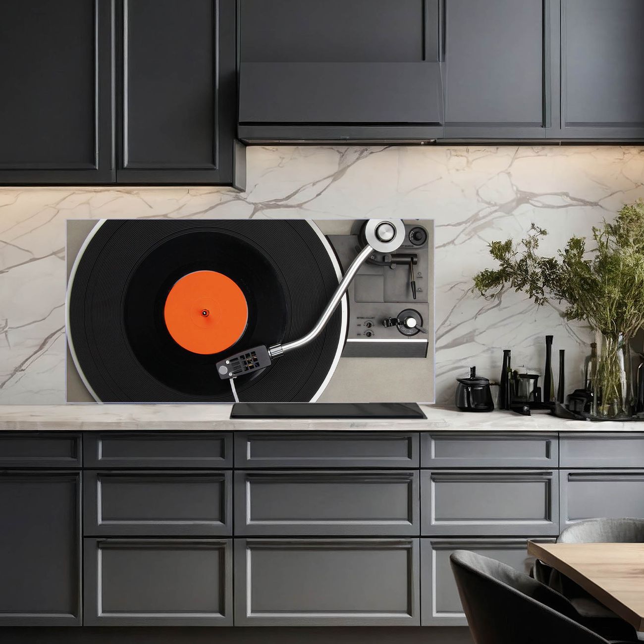 Küchenrückwand Glas Motiv Plattenspieler