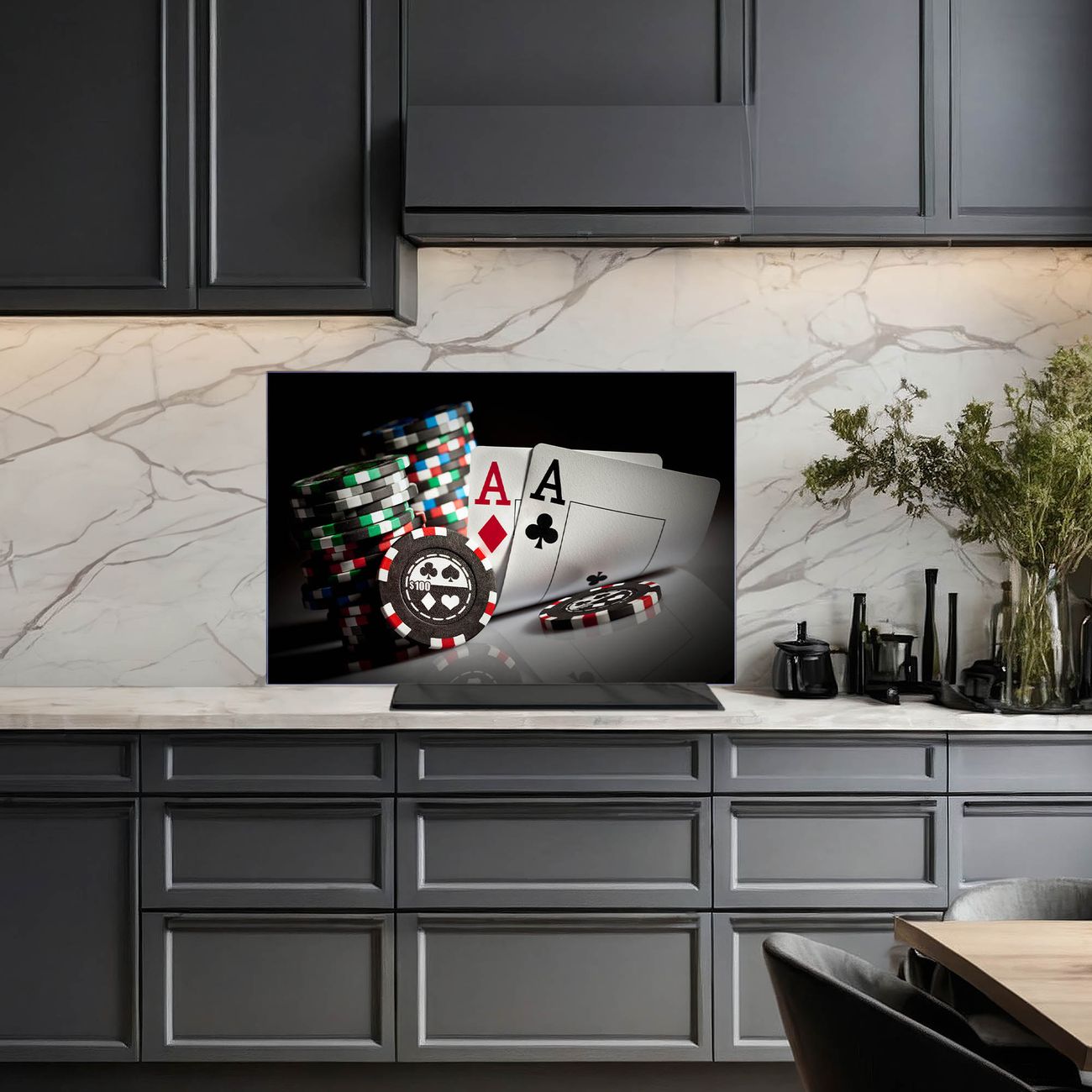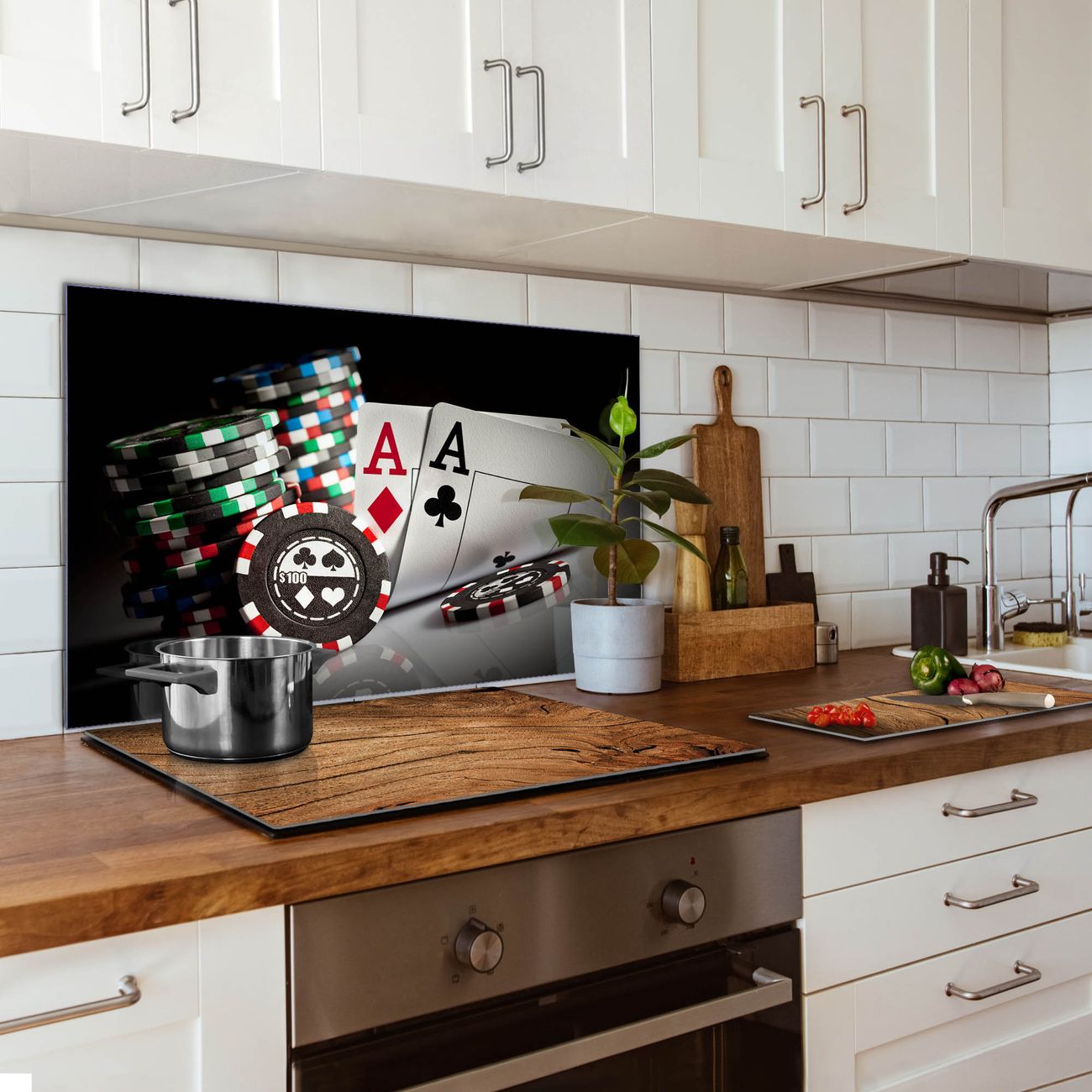 Die banjado Glas Küchenrückwand in verschiedenen Größen mit Motiv Poker schützt Ihre Küchenfliesen vor Fettspritzern oder Wasserflecken. Der Spritzschutz ist gleichzeitig magnetisch und hält Ihre Rezepte oder Einkaufslisten. 4 Neodym-Magnete und 1 Kreidestift liegen bereits bei. Leuchtende Motive und hochwertiges Material machen den Spritzschutz zum Designobjekt. Das dekorative Glasbild gibt Ihrer Küche ein individuelles Erscheinungsbild. Abgerundete Kanten und Sicherheitsglas sorgen für einen sicheren Einsatz.