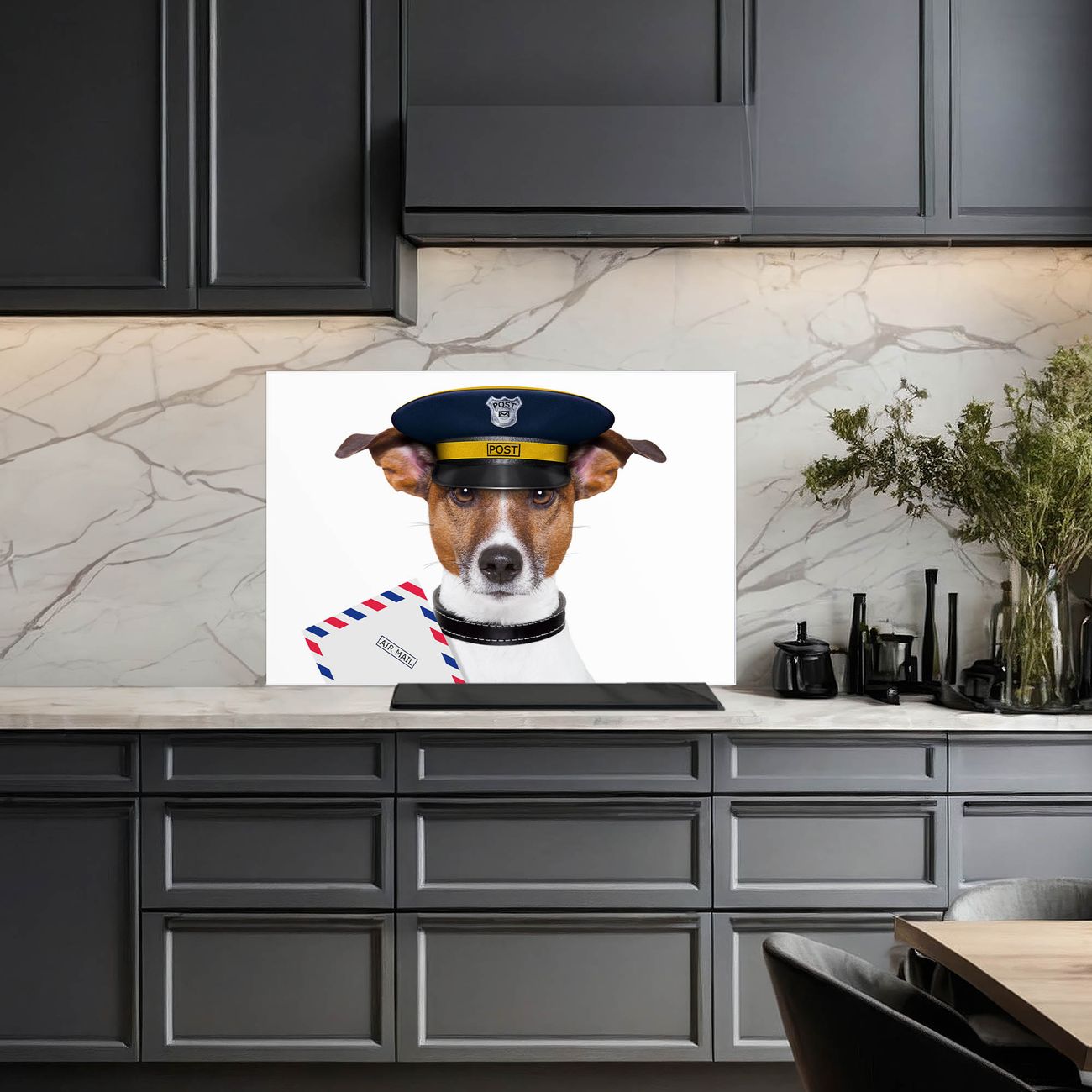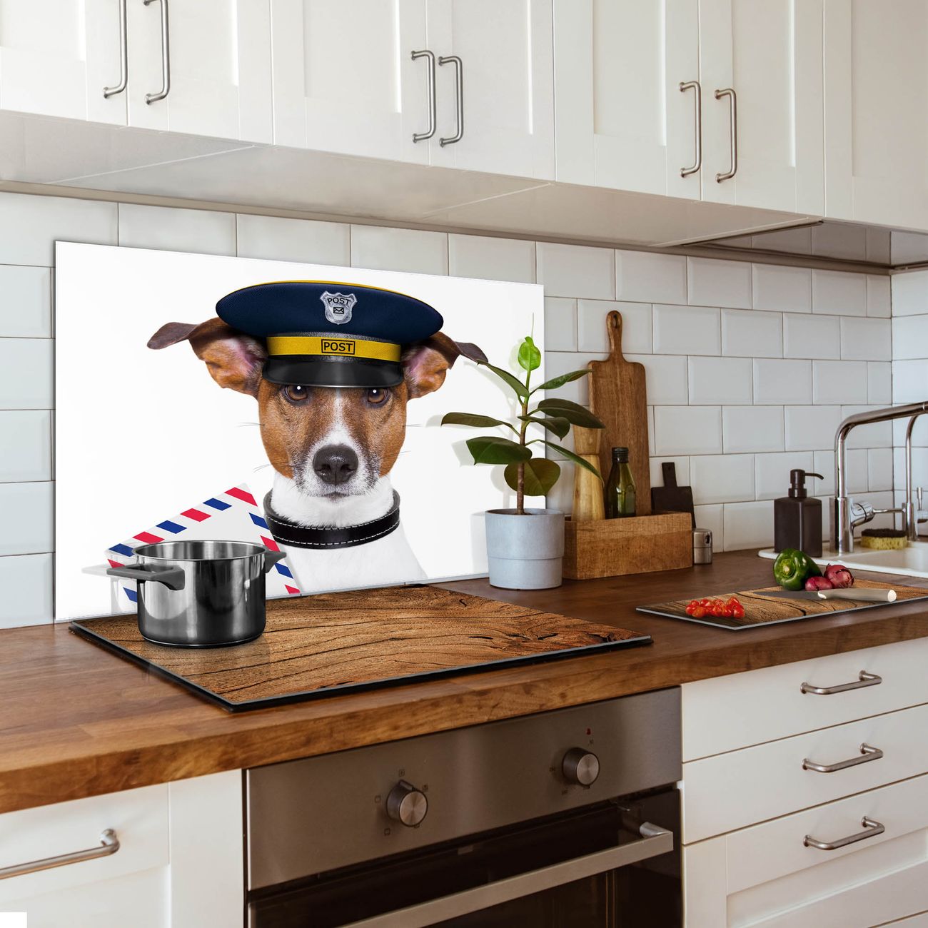 Küchenrückwand Glas Motiv Postbote Jack Russel