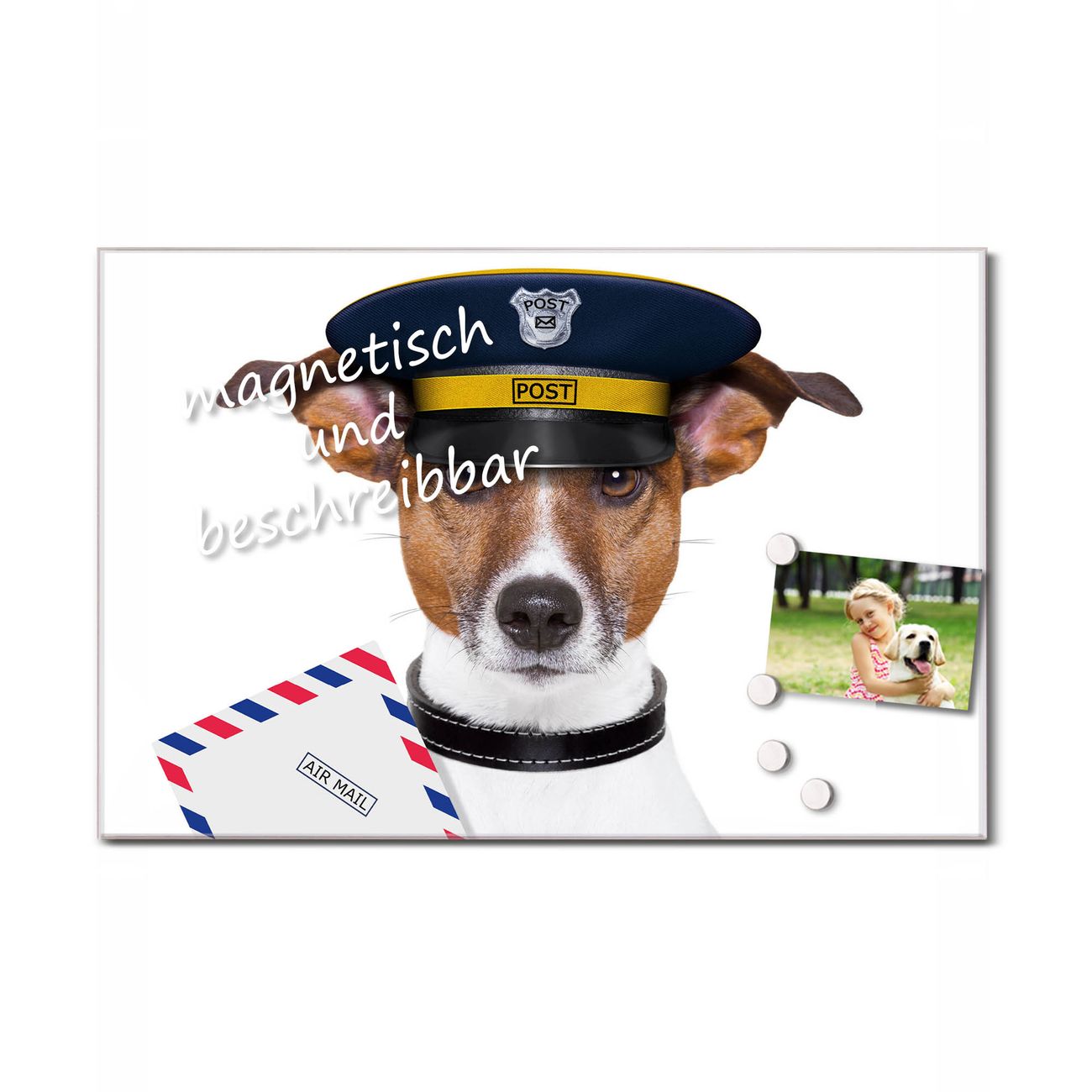 Die banjado Glas Küchenrückwand in verschiedenen Größen mit Motiv Postbote Jack Russel schützt Ihre Küchenfliesen vor Fettspritzern oder Wasserflecken. Der Spritzschutz ist gleichzeitig magnetisch und hält Ihre Rezepte oder Einkaufslisten. 4 Neodym-Magnete und 1 Kreidestift liegen bereits bei. Leuchtende Motive und hochwertiges Material machen den Spritzschutz zum Designobjekt. Das dekorative Glasbild gibt Ihrer Küche ein individuelles Erscheinungsbild. Abgerundete Kanten und Sicherheitsglas sorgen für einen sicheren Einsatz.