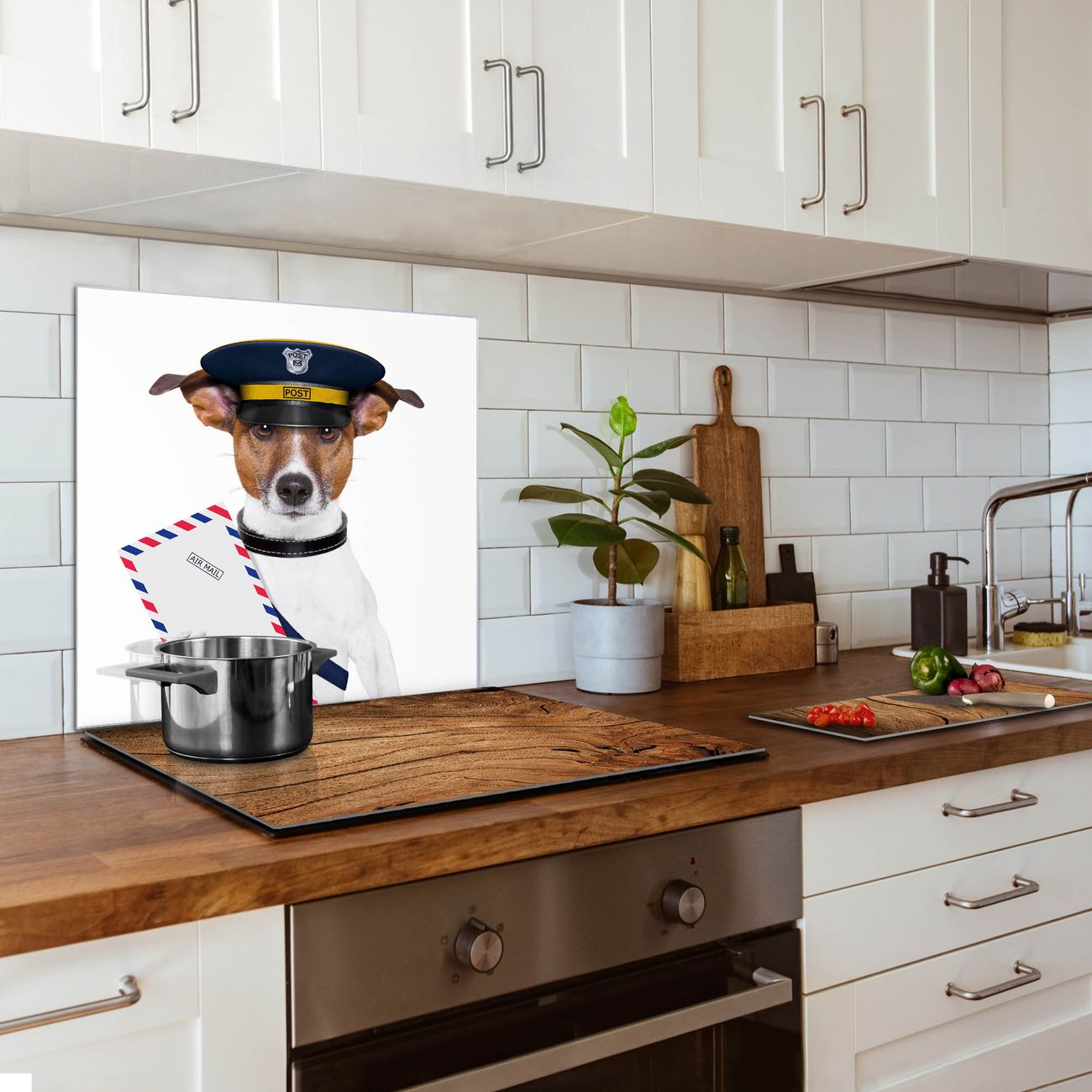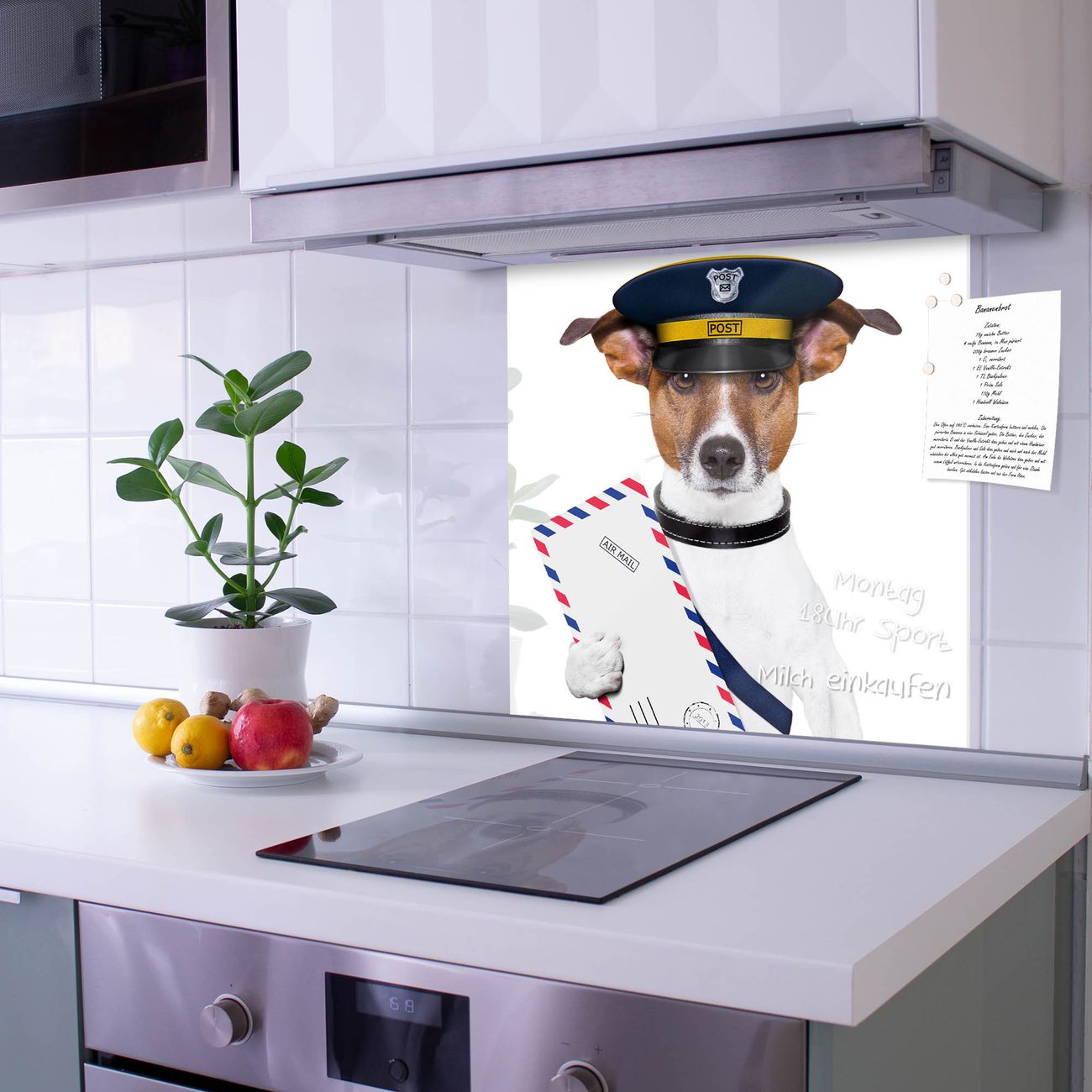 Küchenrückwand Glas Motiv Postbote Jack Russel