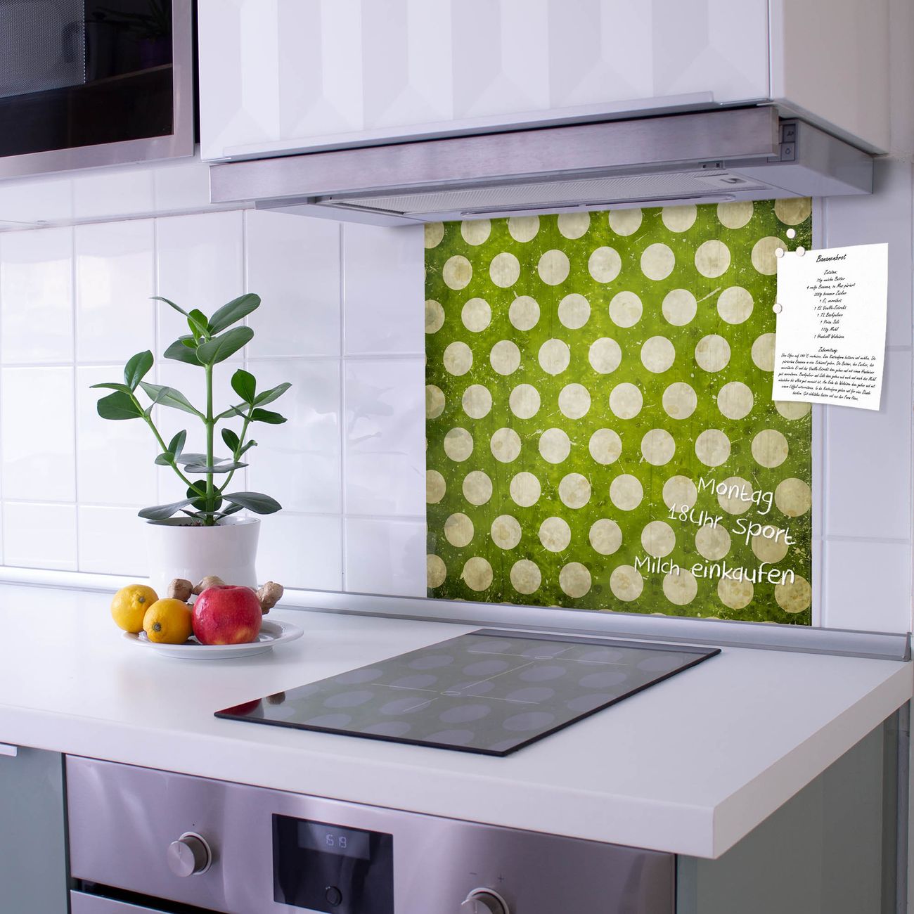 Küchenrückwand Glas Motiv Punkte Grün Vintage