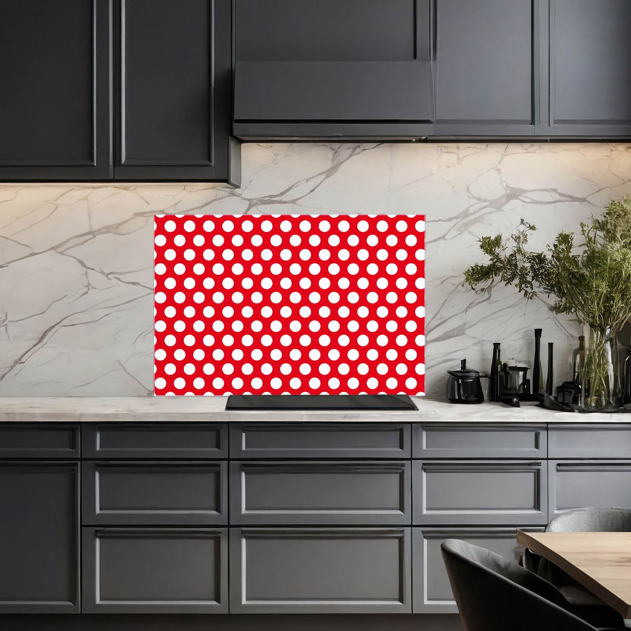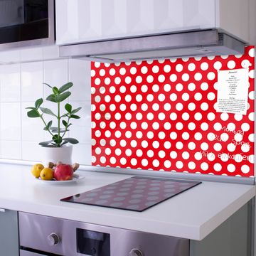 Die banjado Glas Küchenrückwand in verschiedenen Größen mit Motiv Punkte Rot schützt Ihre Küchenfliesen vor Fettspritzern oder Wasserflecken. Der Spritzschutz ist gleichzeitig magnetisch und hält Ihre Rezepte oder Einkaufslisten. 4 Neodym-Magnete und 1 Kreidestift liegen bereits bei. Leuchtende Motive und hochwertiges Material machen den Spritzschutz zum Designobjekt. Das dekorative Glasbild gibt Ihrer Küche ein individuelles Erscheinungsbild. Abgerundete Kanten und Sicherheitsglas sorgen für einen sicheren Einsatz.