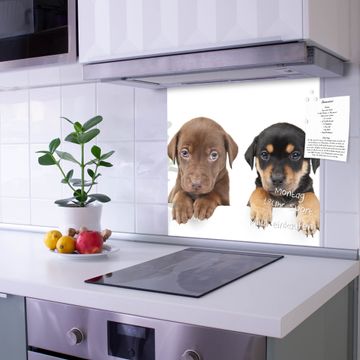 Die banjado Glas Küchenrückwand in verschiedenen Größen mit Motiv Puppies schützt Ihre Küchenfliesen vor Fettspritzern oder Wasserflecken. Der Spritzschutz ist gleichzeitig magnetisch und hält Ihre Rezepte oder Einkaufslisten. 4 Neodym-Magnete und 1 Kreidestift liegen bereits bei. Leuchtende Motive und hochwertiges Material machen den Spritzschutz zum Designobjekt. Das dekorative Glasbild gibt Ihrer Küche ein individuelles Erscheinungsbild. Abgerundete Kanten und Sicherheitsglas sorgen für einen sicheren Einsatz.