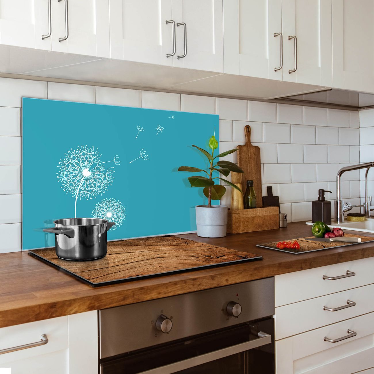 Die banjado Glas Küchenrückwand in verschiedenen Größen mit Motiv Pusteblume 4 schützt Ihre Küchenfliesen vor Fettspritzern oder Wasserflecken. Der Spritzschutz ist gleichzeitig magnetisch und hält Ihre Rezepte oder Einkaufslisten. 4 Neodym-Magnete und 1 Kreidestift liegen bereits bei. Leuchtende Motive und hochwertiges Material machen den Spritzschutz zum Designobjekt. Das dekorative Glasbild gibt Ihrer Küche ein individuelles Erscheinungsbild. Abgerundete Kanten und Sicherheitsglas sorgen für einen sicheren Einsatz.