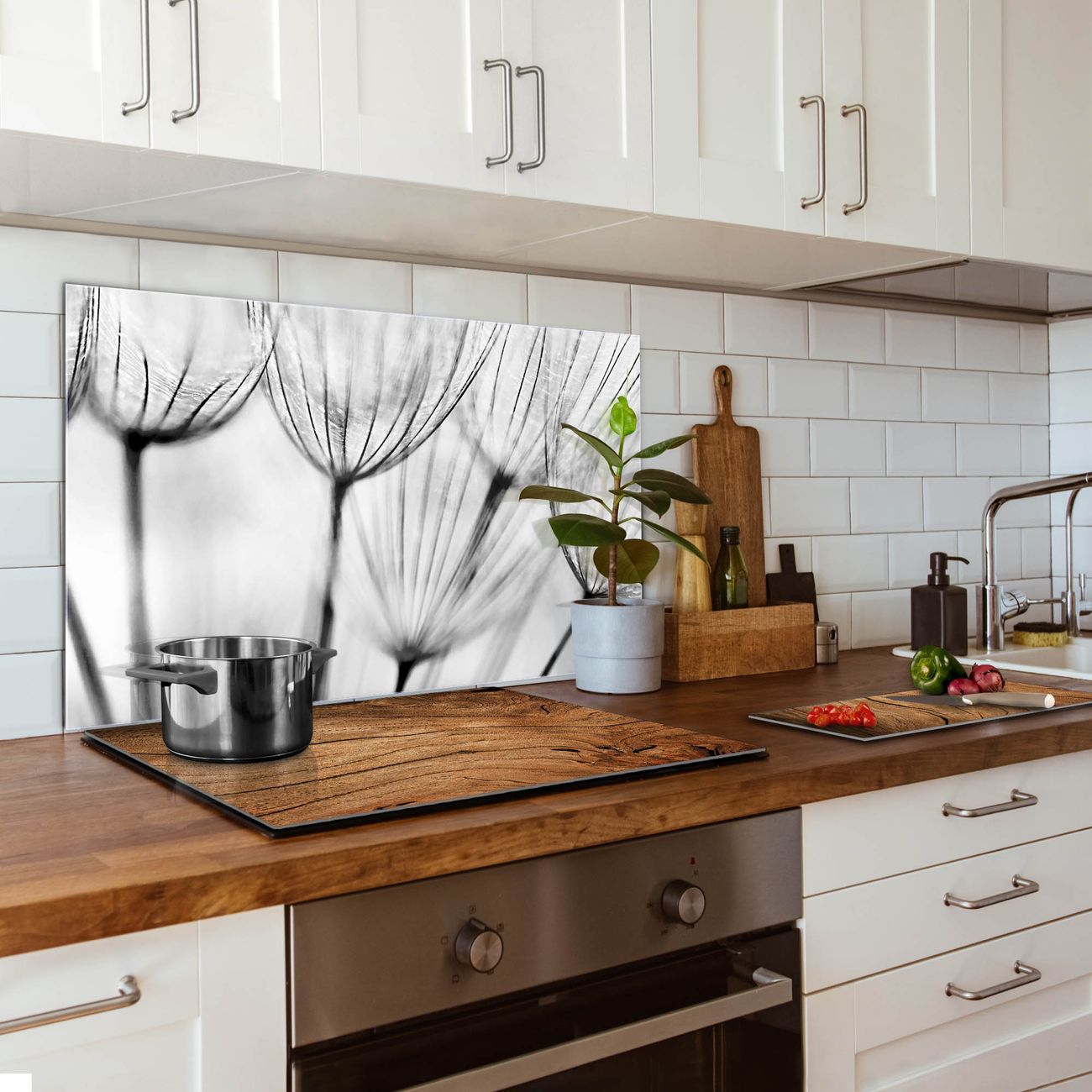 Die banjado Glas Küchenrückwand in verschiedenen Größen mit Motiv Pusteblumen SW schützt Ihre Küchenfliesen vor Fettspritzern oder Wasserflecken. Der Spritzschutz ist gleichzeitig magnetisch und hält Ihre Rezepte oder Einkaufslisten. 4 Neodym-Magnete und 1 Kreidestift liegen bereits bei. Leuchtende Motive und hochwertiges Material machen den Spritzschutz zum Designobjekt. Das dekorative Glasbild gibt Ihrer Küche ein individuelles Erscheinungsbild. Abgerundete Kanten und Sicherheitsglas sorgen für einen sicheren Einsatz.