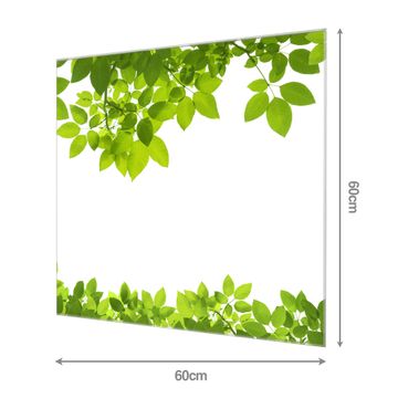 Die banjado Glas Küchenrückwand in verschiedenen Größen mit Motiv Rahmen Blätter schützt Ihre Küchenfliesen vor Fettspritzern oder Wasserflecken. Der Spritzschutz ist gleichzeitig magnetisch und hält Ihre Rezepte oder Einkaufslisten. 4 Neodym-Magnete und 1 Kreidestift liegen bereits bei. Leuchtende Motive und hochwertiges Material machen den Spritzschutz zum Designobjekt. Das dekorative Glasbild gibt Ihrer Küche ein individuelles Erscheinungsbild. Abgerundete Kanten und Sicherheitsglas sorgen für einen sicheren Einsatz.