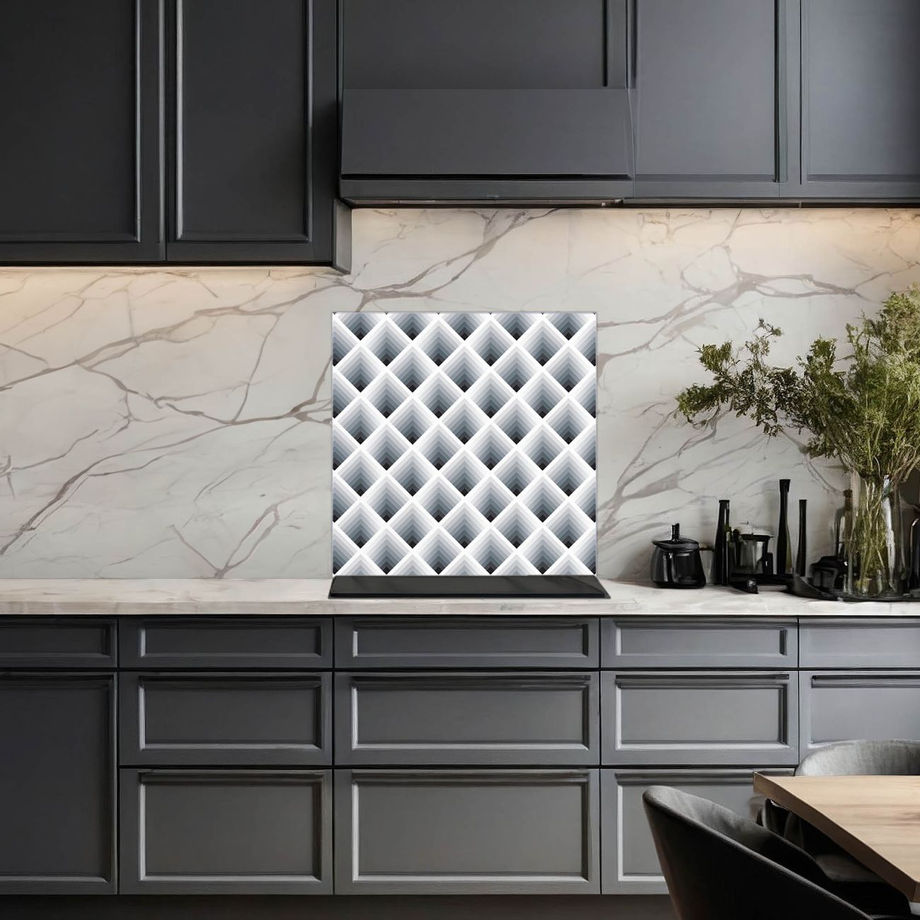 Küchenrückwand Glas Motiv Raster 3D Grau