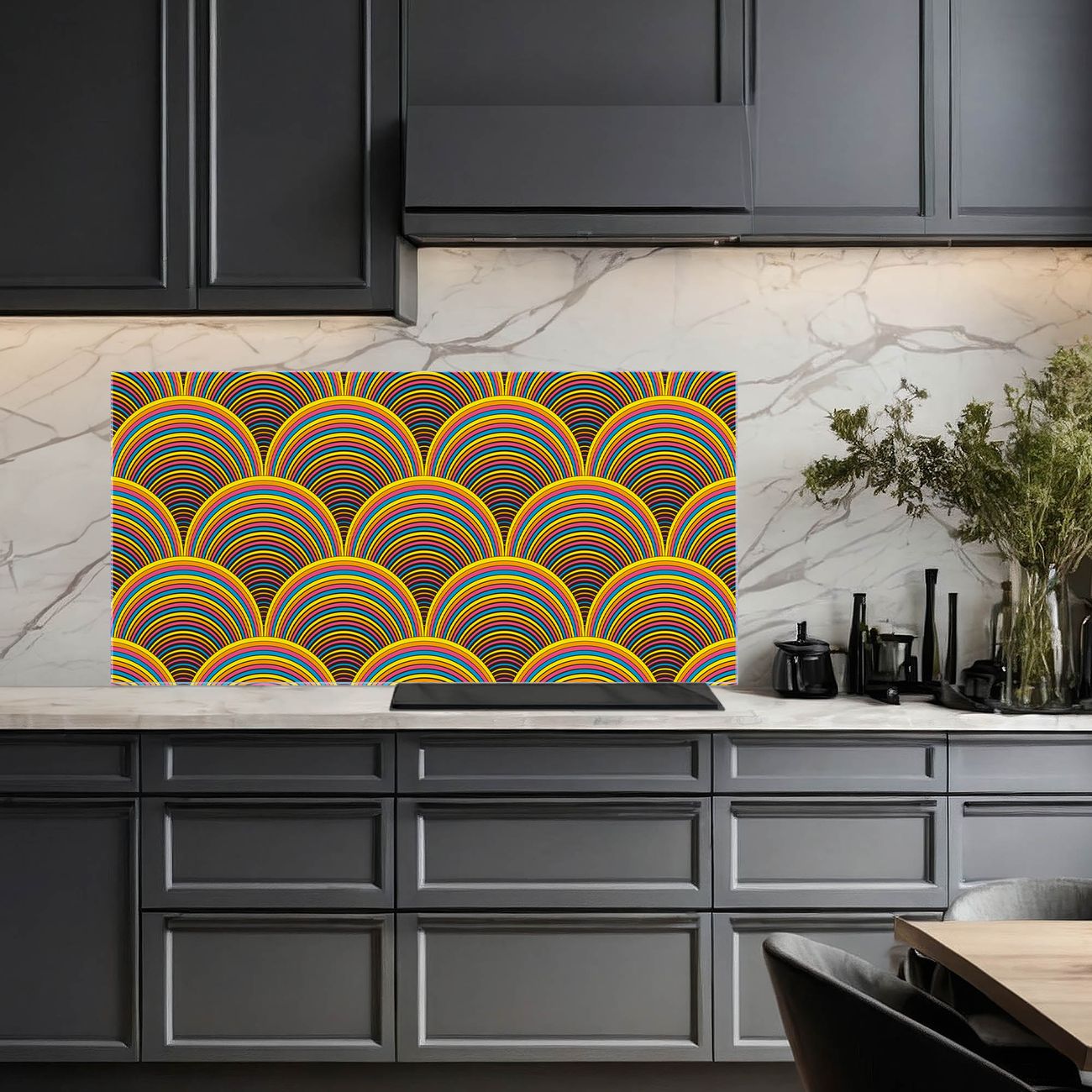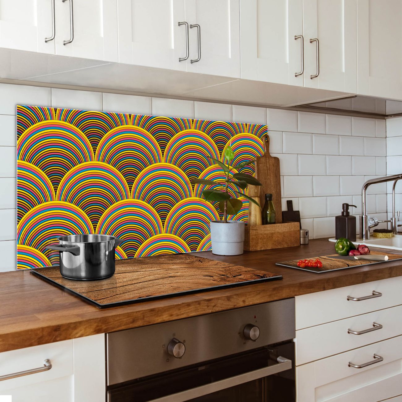 Die banjado Glas Küchenrückwand in verschiedenen Größen mit Motiv Regenbögen schützt Ihre Küchenfliesen vor Fettspritzern oder Wasserflecken. Der Spritzschutz ist gleichzeitig magnetisch und hält Ihre Rezepte oder Einkaufslisten. 4 Neodym-Magnete und 1 Kreidestift liegen bereits bei. Leuchtende Motive und hochwertiges Material machen den Spritzschutz zum Designobjekt. Das dekorative Glasbild gibt Ihrer Küche ein individuelles Erscheinungsbild. Abgerundete Kanten und Sicherheitsglas sorgen für einen sicheren Einsatz.