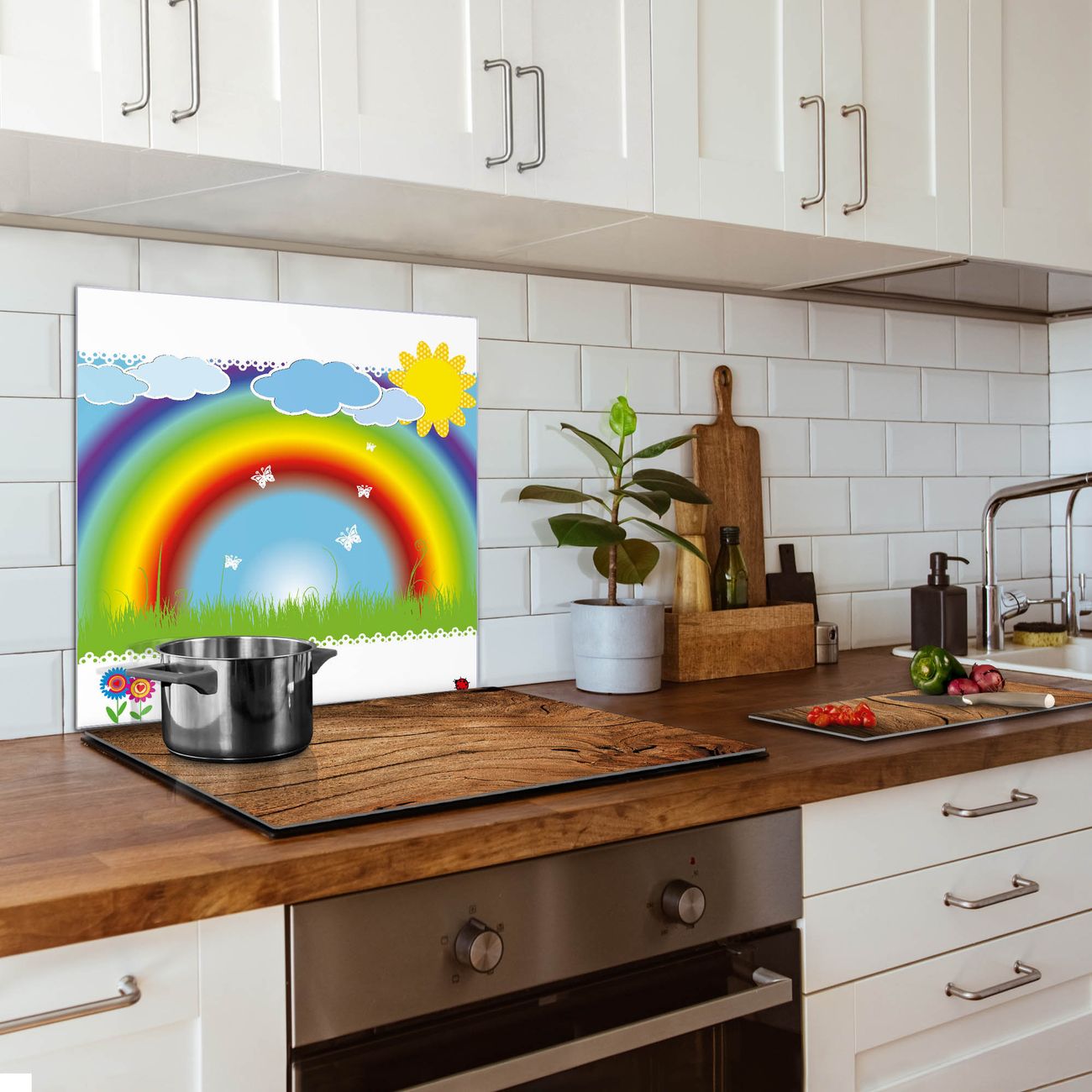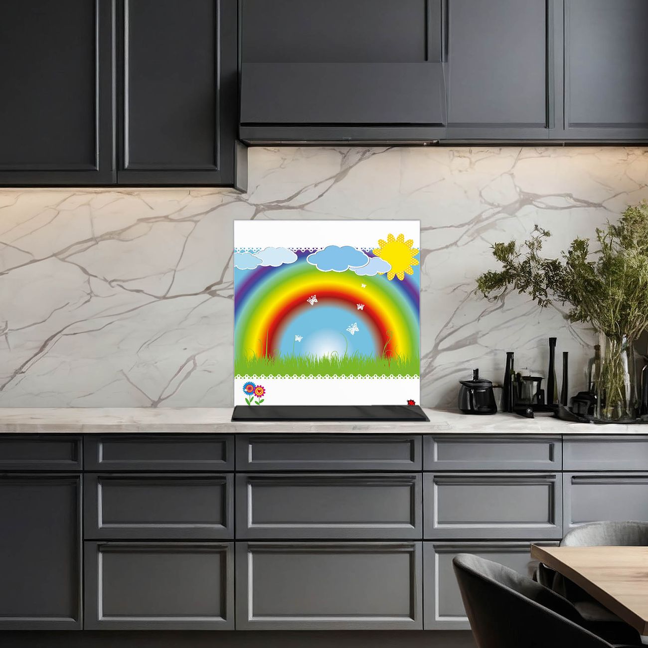 Die banjado Glas Küchenrückwand in verschiedenen Größen mit Motiv Regenbogen schützt Ihre Küchenfliesen vor Fettspritzern oder Wasserflecken. Der Spritzschutz ist gleichzeitig magnetisch und hält Ihre Rezepte oder Einkaufslisten. 4 Neodym-Magnete und 1 Kreidestift liegen bereits bei. Leuchtende Motive und hochwertiges Material machen den Spritzschutz zum Designobjekt. Das dekorative Glasbild gibt Ihrer Küche ein individuelles Erscheinungsbild. Abgerundete Kanten und Sicherheitsglas sorgen für einen sicheren Einsatz.