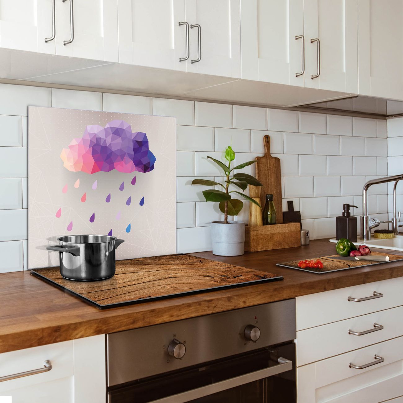 Die banjado Glas Küchenrückwand in verschiedenen Größen mit Motiv Regenwolke schützt Ihre Küchenfliesen vor Fettspritzern oder Wasserflecken. Der Spritzschutz ist gleichzeitig magnetisch und hält Ihre Rezepte oder Einkaufslisten. 4 Neodym-Magnete und 1 Kreidestift liegen bereits bei. Leuchtende Motive und hochwertiges Material machen den Spritzschutz zum Designobjekt. Das dekorative Glasbild gibt Ihrer Küche ein individuelles Erscheinungsbild. Abgerundete Kanten und Sicherheitsglas sorgen für einen sicheren Einsatz.