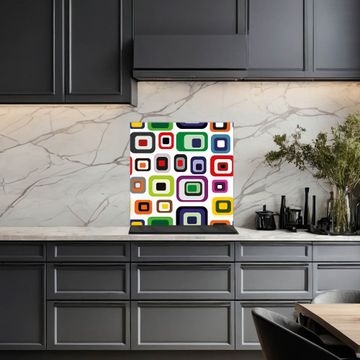 Die banjado Glas Küchenrückwand in verschiedenen Größen mit Motiv Retro 2 schützt Ihre Küchenfliesen vor Fettspritzern oder Wasserflecken. Der Spritzschutz ist gleichzeitig magnetisch und hält Ihre Rezepte oder Einkaufslisten. 4 Neodym-Magnete und 1 Kreidestift liegen bereits bei. Leuchtende Motive und hochwertiges Material machen den Spritzschutz zum Designobjekt. Das dekorative Glasbild gibt Ihrer Küche ein individuelles Erscheinungsbild. Abgerundete Kanten und Sicherheitsglas sorgen für einen sicheren Einsatz.