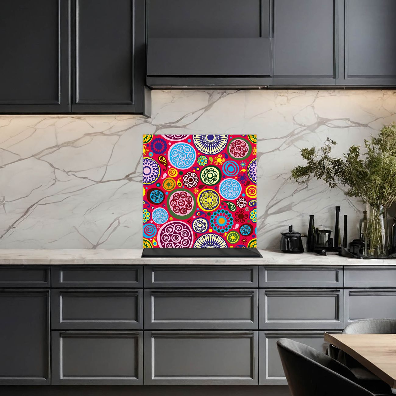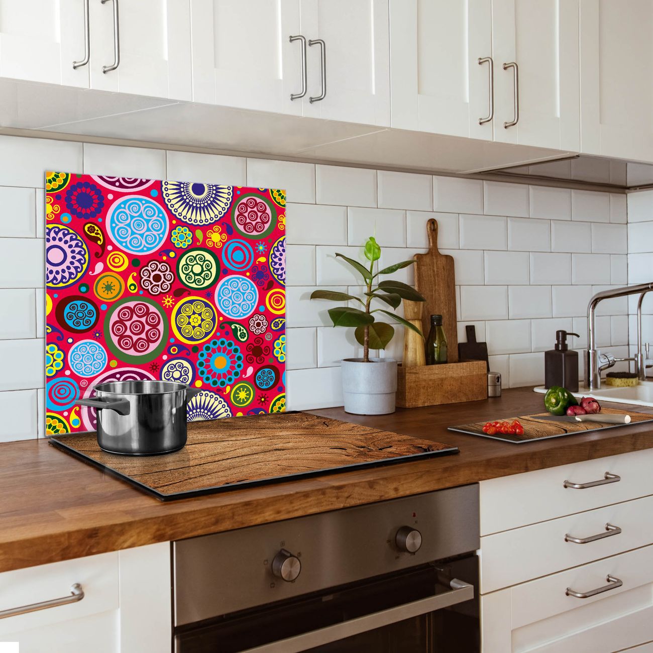 Die banjado Glas Küchenrückwand in verschiedenen Größen mit Motiv Retro Kreise schützt Ihre Küchenfliesen vor Fettspritzern oder Wasserflecken. Der Spritzschutz ist gleichzeitig magnetisch und hält Ihre Rezepte oder Einkaufslisten. 4 Neodym-Magnete und 1 Kreidestift liegen bereits bei. Leuchtende Motive und hochwertiges Material machen den Spritzschutz zum Designobjekt. Das dekorative Glasbild gibt Ihrer Küche ein individuelles Erscheinungsbild. Abgerundete Kanten und Sicherheitsglas sorgen für einen sicheren Einsatz.