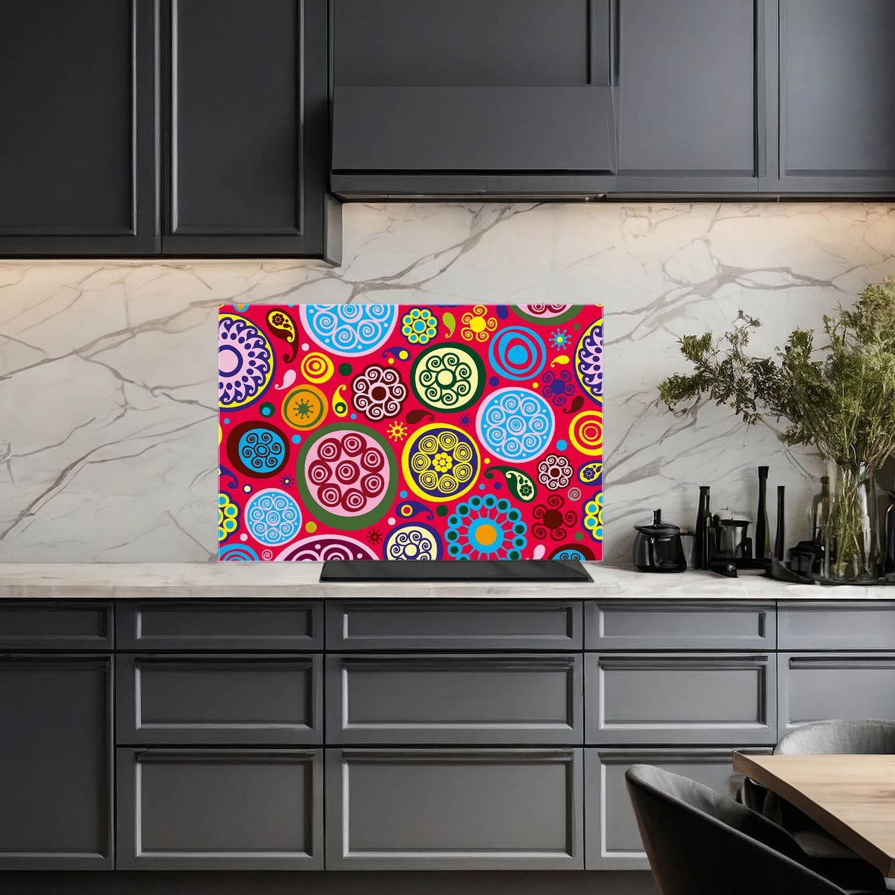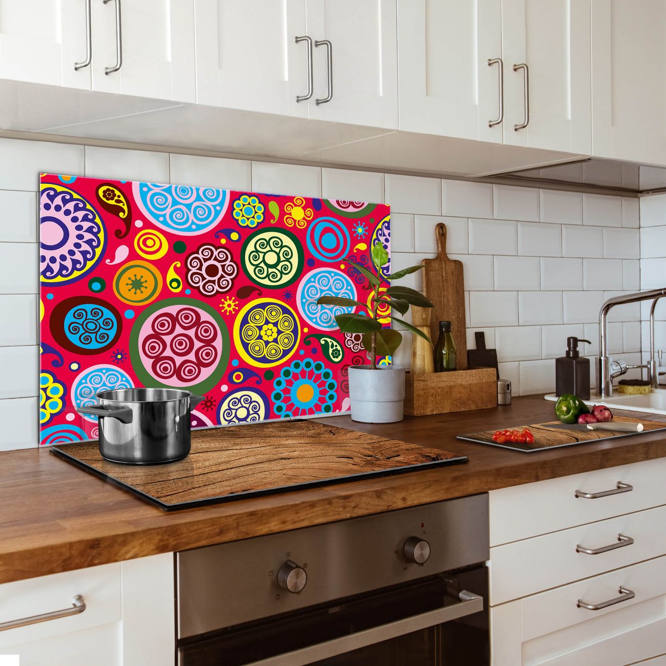 Die banjado Glas Küchenrückwand in verschiedenen Größen mit Motiv Retro Kreise schützt Ihre Küchenfliesen vor Fettspritzern oder Wasserflecken. Der Spritzschutz ist gleichzeitig magnetisch und hält Ihre Rezepte oder Einkaufslisten. 4 Neodym-Magnete und 1 Kreidestift liegen bereits bei. Leuchtende Motive und hochwertiges Material machen den Spritzschutz zum Designobjekt. Das dekorative Glasbild gibt Ihrer Küche ein individuelles Erscheinungsbild. Abgerundete Kanten und Sicherheitsglas sorgen für einen sicheren Einsatz.