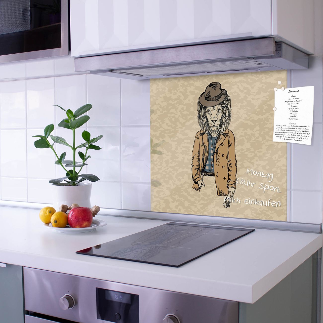 Die Küchenrückwand ist eine elegante Mehrzwecktafel: als Spritzschutz hinter Herd oder Waschbecken, hält Notizen wie ein Memoboard, ist beschreibbar mit Kreidestiften oder Whiteboard-Markern, sieht umwerfend als Glasbild aus. Sie besteht aus gehärtetem Glas, die Rückwand aus einem magnetischen Stahlblech. Durch die superflache Bauweise haben Sie die Wahl aus einer Vielzahl von Befestigungsmöglichkeiten. Sie können die Küchenrückwand mit einem Montagekleber superflach an die Wand kleben oder Sie wählen eines unserer passenden Befestigungssets, welches eine optimale Montage garantiert. Die Küchenrückwand besteht aus zertifiziertem Sicherheitsglas. Durch die mitgelieferten 4 Neodym-Magnete ist Ihre Glas Magnettafel sofort einsatzbereit.