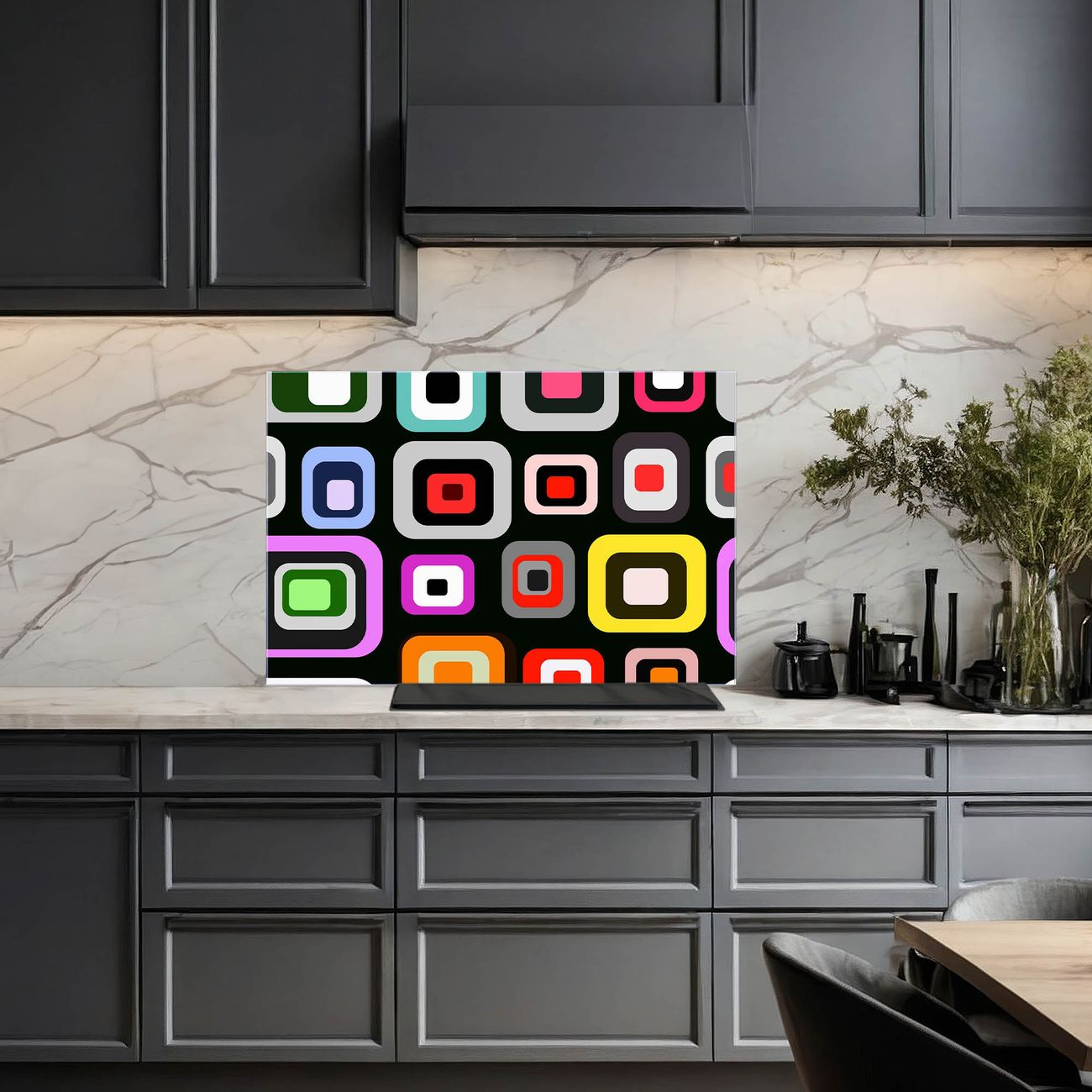 Die Küchenrückwand ist eine elegante Mehrzwecktafel: als Spritzschutz hinter Herd oder Waschbecken, hält Notizen wie ein Memoboard, ist beschreibbar mit Kreidestiften oder Whiteboard-Markern, sieht umwerfend als Glasbild aus. Sie besteht aus gehärtetem Glas, die Rückwand aus einem magnetischen Stahlblech. Durch die superflache Bauweise haben Sie die Wahl aus einer Vielzahl von Befestigungsmöglichkeiten. Sie können die Küchenrückwand mit einem Montagekleber superflach an die Wand kleben oder Sie wählen eines unserer passenden Befestigungssets, welches eine optimale Montage garantiert. Die Küchenrückwand besteht aus zertifiziertem Sicherheitsglas. Durch die mitgelieferten 4 Neodym-Magnete ist Ihre Glas Magnettafel sofort einsatzbereit.