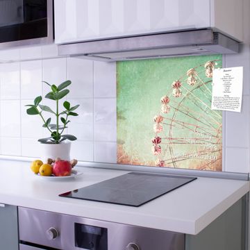 Die banjado Glas Küchenrückwand in verschiedenen Größen mit Motiv Riesenrad 1 schützt Ihre Küchenfliesen vor Fettspritzern oder Wasserflecken. Der Spritzschutz ist gleichzeitig magnetisch und hält Ihre Rezepte oder Einkaufslisten. 4 Neodym-Magnete und 1 Kreidestift liegen bereits bei. Leuchtende Motive und hochwertiges Material machen den Spritzschutz zum Designobjekt. Das dekorative Glasbild gibt Ihrer Küche ein individuelles Erscheinungsbild. Abgerundete Kanten und Sicherheitsglas sorgen für einen sicheren Einsatz.