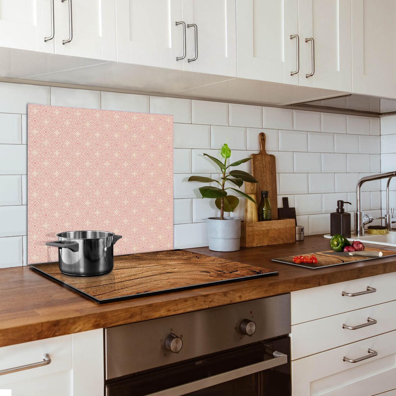 Küchenrückwand Glas Motiv Rosa Arabesque