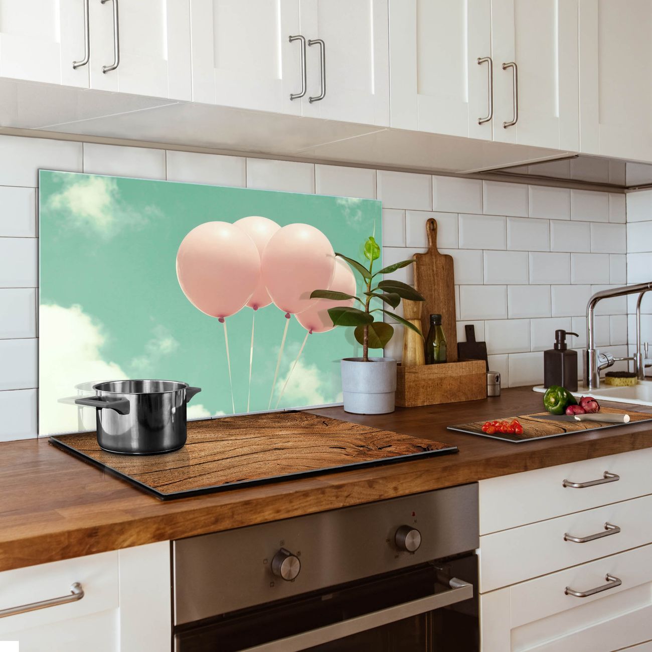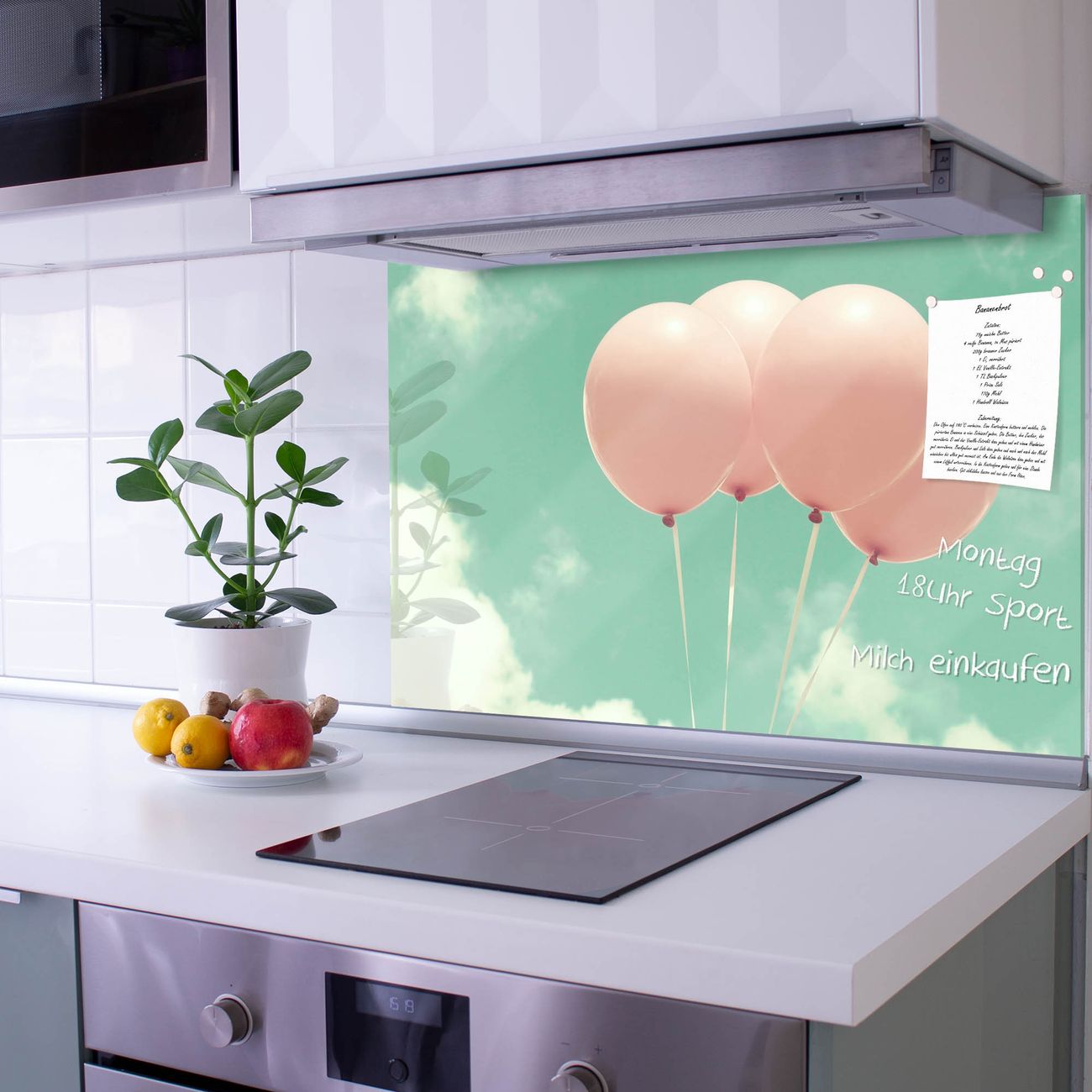 Die banjado Glas Küchenrückwand in verschiedenen Größen mit Motiv Rosa Ballons schützt Ihre Küchenfliesen vor Fettspritzern oder Wasserflecken. Der Spritzschutz ist gleichzeitig magnetisch und hält Ihre Rezepte oder Einkaufslisten. 4 Neodym-Magnete und 1 Kreidestift liegen bereits bei. Leuchtende Motive und hochwertiges Material machen den Spritzschutz zum Designobjekt. Das dekorative Glasbild gibt Ihrer Küche ein individuelles Erscheinungsbild. Abgerundete Kanten und Sicherheitsglas sorgen für einen sicheren Einsatz.