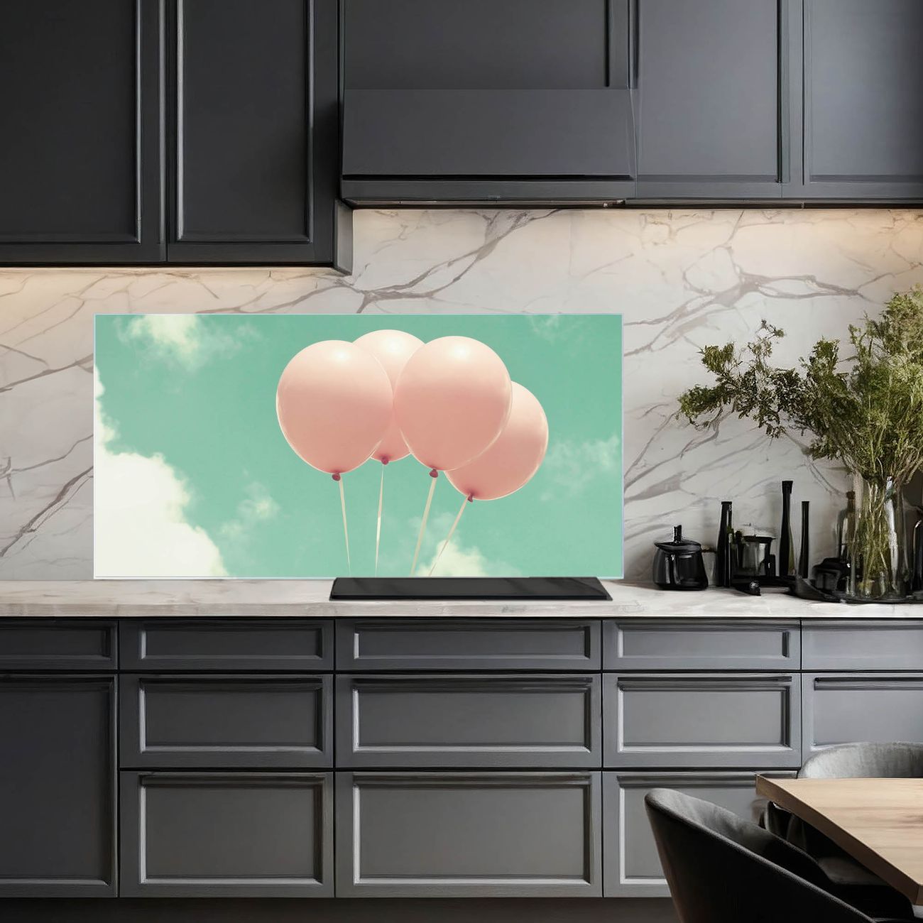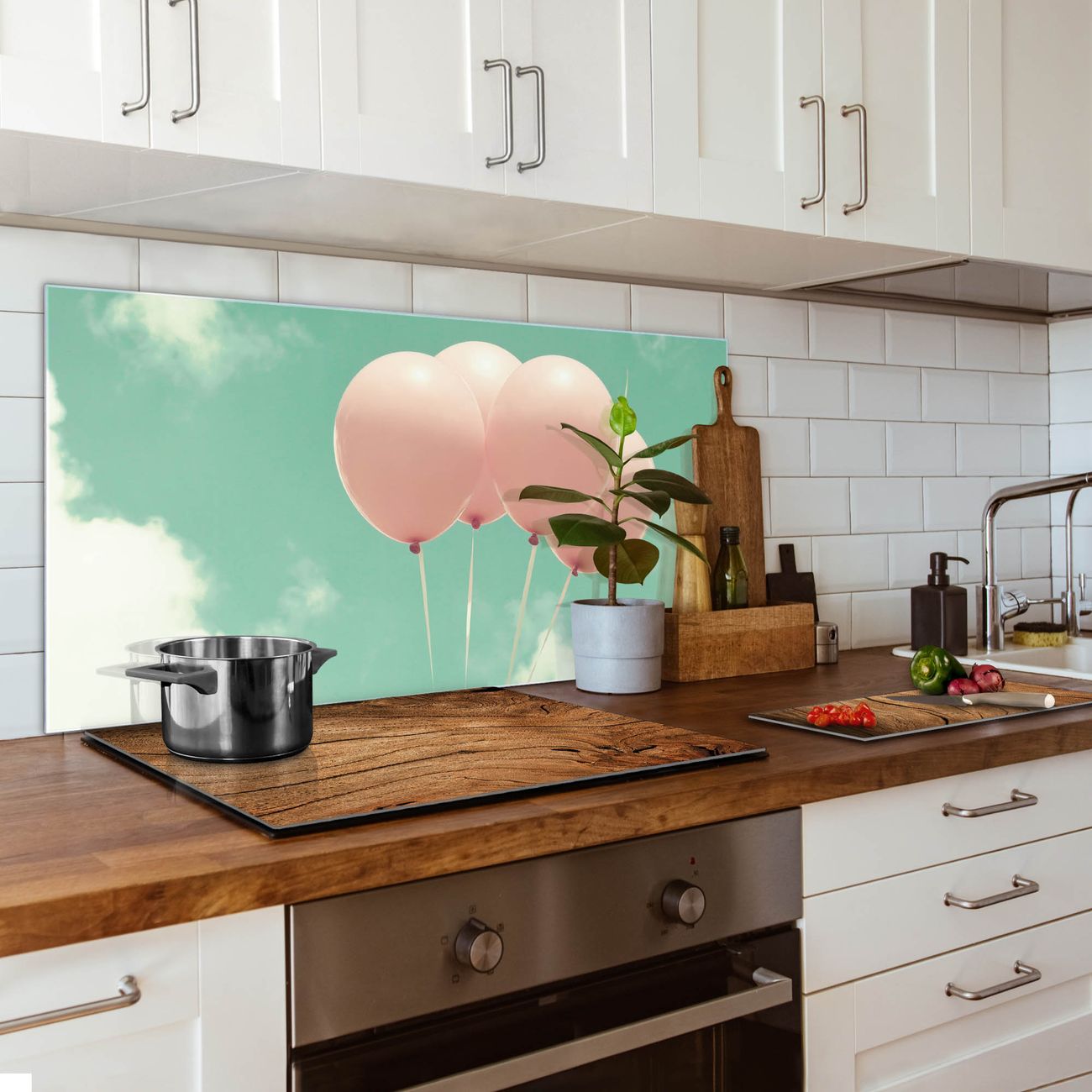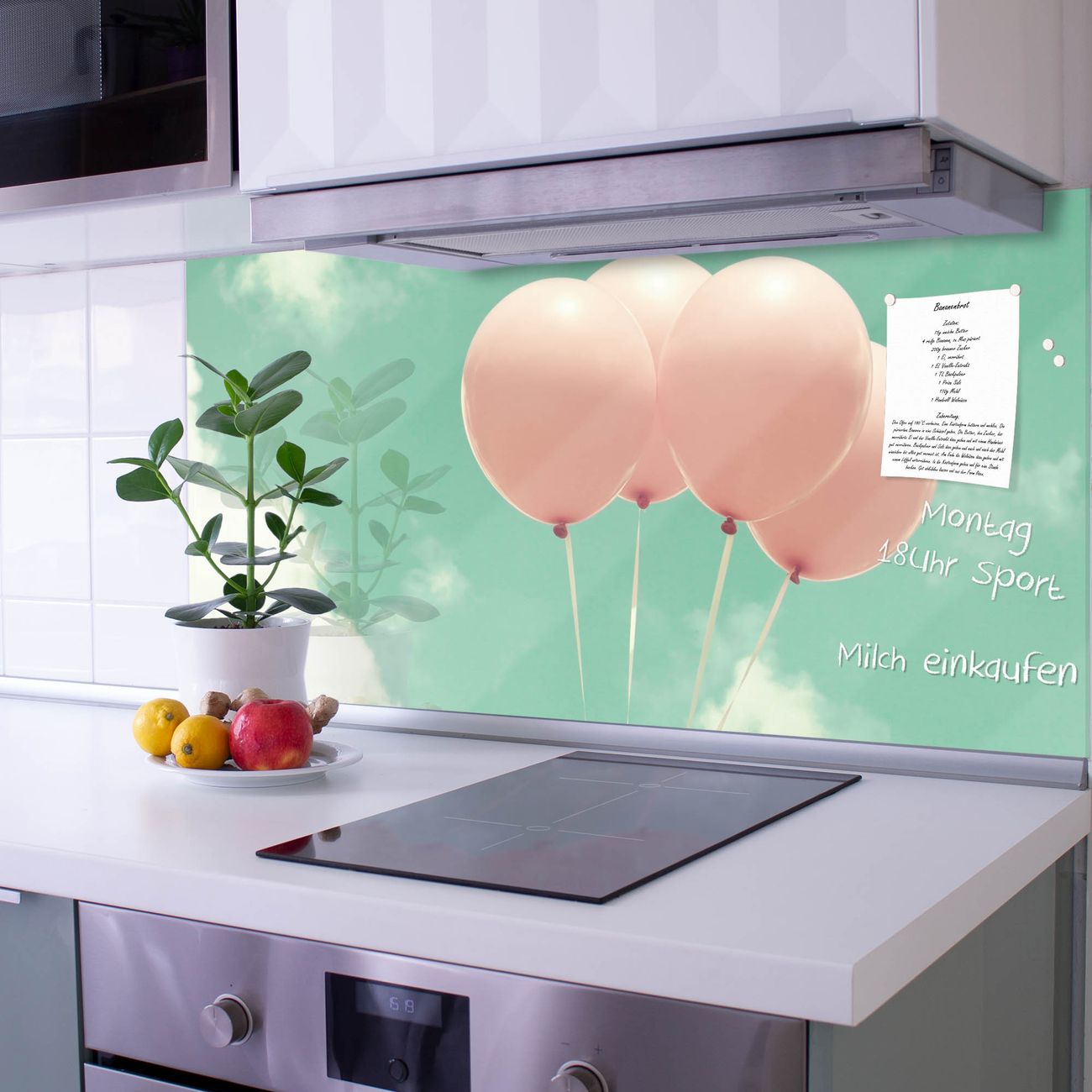 Die banjado Glas Küchenrückwand in verschiedenen Größen mit Motiv Rosa Ballons schützt Ihre Küchenfliesen vor Fettspritzern oder Wasserflecken. Der Spritzschutz ist gleichzeitig magnetisch und hält Ihre Rezepte oder Einkaufslisten. 4 Neodym-Magnete und 1 Kreidestift liegen bereits bei. Leuchtende Motive und hochwertiges Material machen den Spritzschutz zum Designobjekt. Das dekorative Glasbild gibt Ihrer Küche ein individuelles Erscheinungsbild. Abgerundete Kanten und Sicherheitsglas sorgen für einen sicheren Einsatz.