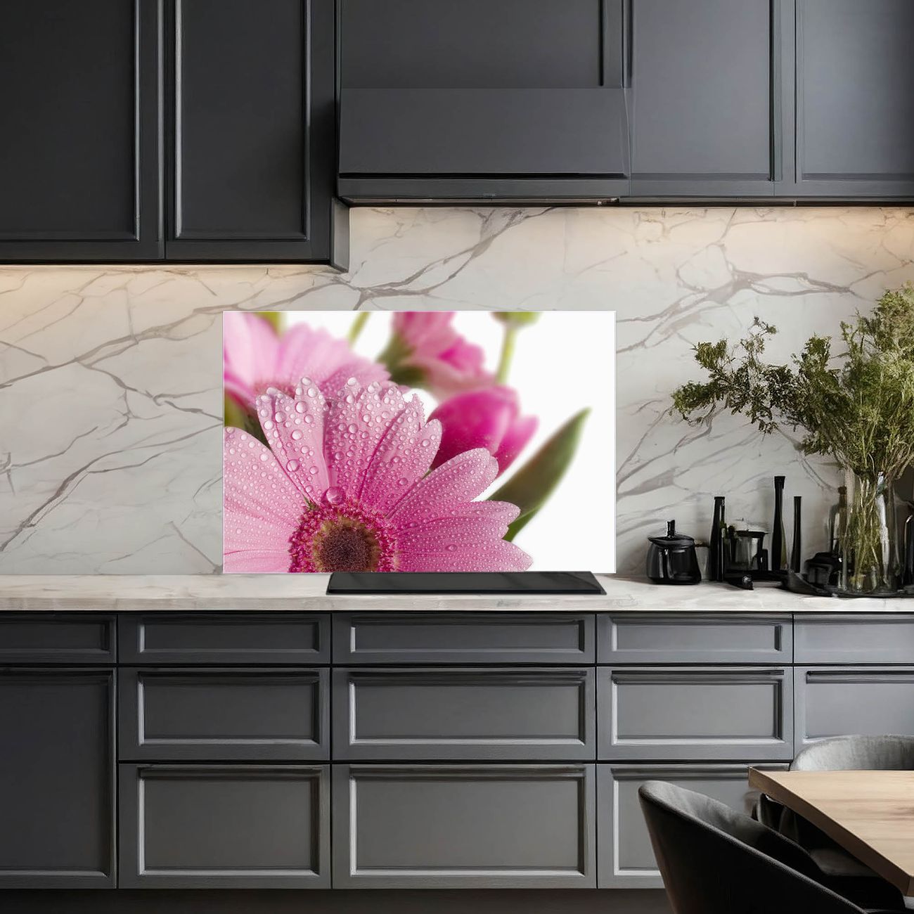 Küchenrückwand Glas Motiv Rosa Gerbera
