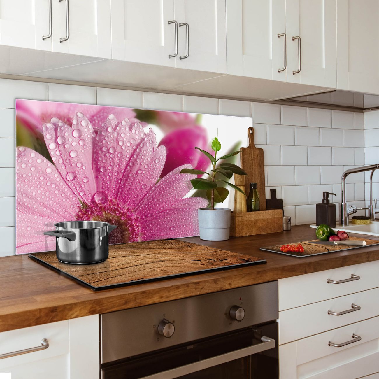 Küchenrückwand Glas Motiv Rosa Gerbera