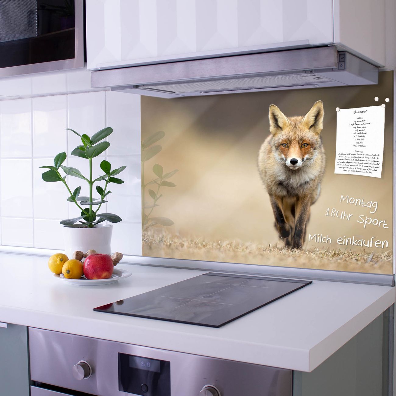 Die Küchenrückwand ist eine elegante Mehrzwecktafel: als Spritzschutz hinter Herd oder Waschbecken, hält Notizen wie ein Memoboard, ist beschreibbar mit Kreidestiften oder Whiteboard-Markern, sieht umwerfend als Glasbild aus. Sie besteht aus gehärtetem Glas, die Rückwand aus einem magnetischen Stahlblech. Durch die superflache Bauweise haben Sie die Wahl aus einer Vielzahl von Befestigungsmöglichkeiten. Sie können die Küchenrückwand mit einem Montagekleber superflach an die Wand kleben oder Sie wählen eines unserer passenden Befestigungssets, welches eine optimale Montage garantiert. Die Küchenrückwand besteht aus zertifiziertem Sicherheitsglas. Durch die mitgelieferten 4 Neodym-Magnete ist Ihre Glas Magnettafel sofort einsatzbereit.