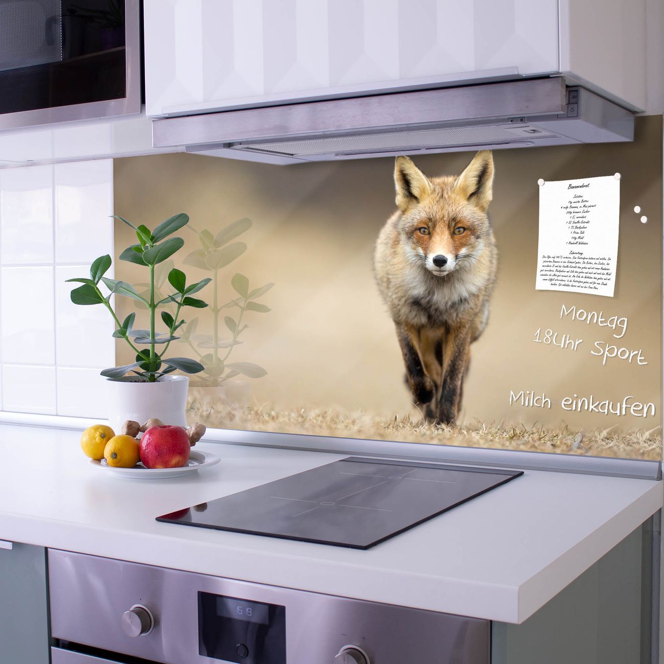 Die Küchenrückwand ist eine elegante Mehrzwecktafel: als Spritzschutz hinter Herd oder Waschbecken, hält Notizen wie ein Memoboard, ist beschreibbar mit Kreidestiften oder Whiteboard-Markern, sieht umwerfend als Glasbild aus. Sie besteht aus gehärtetem Glas, die Rückwand aus einem magnetischen Stahlblech. Durch die superflache Bauweise haben Sie die Wahl aus einer Vielzahl von Befestigungsmöglichkeiten. Sie können die Küchenrückwand mit einem Montagekleber superflach an die Wand kleben oder Sie wählen eines unserer passenden Befestigungssets, welches eine optimale Montage garantiert. Die Küchenrückwand besteht aus zertifiziertem Sicherheitsglas. Durch die mitgelieferten 4 Neodym-Magnete ist Ihre Glas Magnettafel sofort einsatzbereit.
