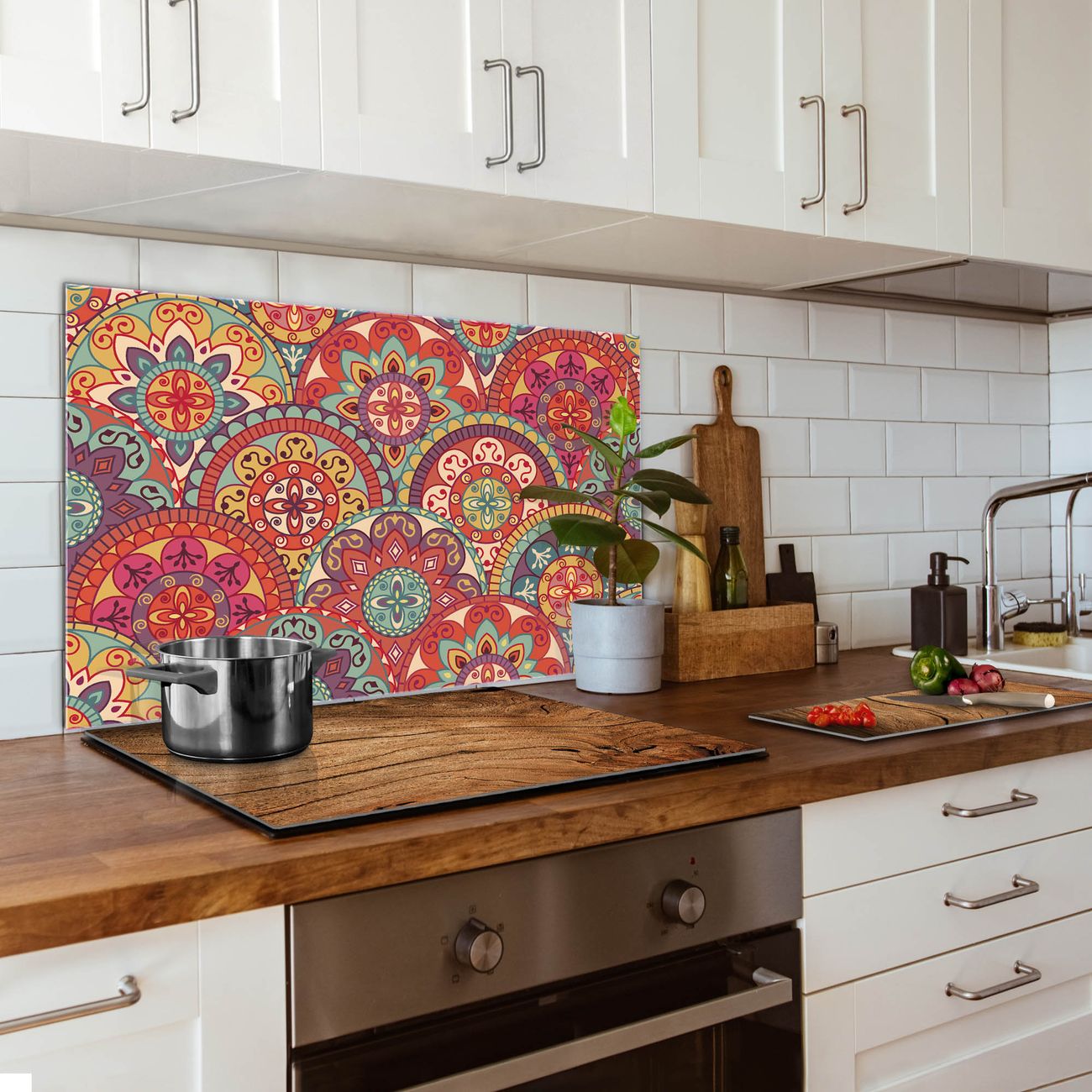 Die banjado Glas Küchenrückwand in verschiedenen Größen mit Motiv Rosetten schützt Ihre Küchenfliesen vor Fettspritzern oder Wasserflecken. Der Spritzschutz ist gleichzeitig magnetisch und hält Ihre Rezepte oder Einkaufslisten. 4 Neodym-Magnete und 1 Kreidestift liegen bereits bei. Leuchtende Motive und hochwertiges Material machen den Spritzschutz zum Designobjekt. Das dekorative Glasbild gibt Ihrer Küche ein individuelles Erscheinungsbild. Abgerundete Kanten und Sicherheitsglas sorgen für einen sicheren Einsatz.