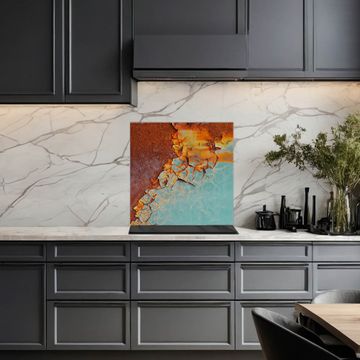 Die banjado Glas Küchenrückwand in verschiedenen Größen mit Motiv Rost und Blau schützt Ihre Küchenfliesen vor Fettspritzern oder Wasserflecken. Der Spritzschutz ist gleichzeitig magnetisch und hält Ihre Rezepte oder Einkaufslisten. 4 Neodym-Magnete und 1 Kreidestift liegen bereits bei. Leuchtende Motive und hochwertiges Material machen den Spritzschutz zum Designobjekt. Das dekorative Glasbild gibt Ihrer Küche ein individuelles Erscheinungsbild. Abgerundete Kanten und Sicherheitsglas sorgen für einen sicheren Einsatz.