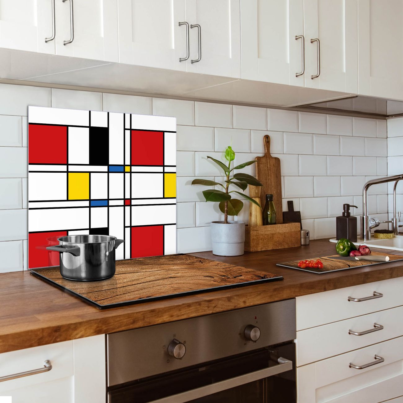 Die banjado Glas Küchenrückwand in verschiedenen Größen mit Motiv Rot Gelb Blau schützt Ihre Küchenfliesen vor Fettspritzern oder Wasserflecken. Der Spritzschutz ist gleichzeitig magnetisch und hält Ihre Rezepte oder Einkaufslisten. 4 Neodym-Magnete und 1 Kreidestift liegen bereits bei. Leuchtende Motive und hochwertiges Material machen den Spritzschutz zum Designobjekt. Das dekorative Glasbild gibt Ihrer Küche ein individuelles Erscheinungsbild. Abgerundete Kanten und Sicherheitsglas sorgen für einen sicheren Einsatz.