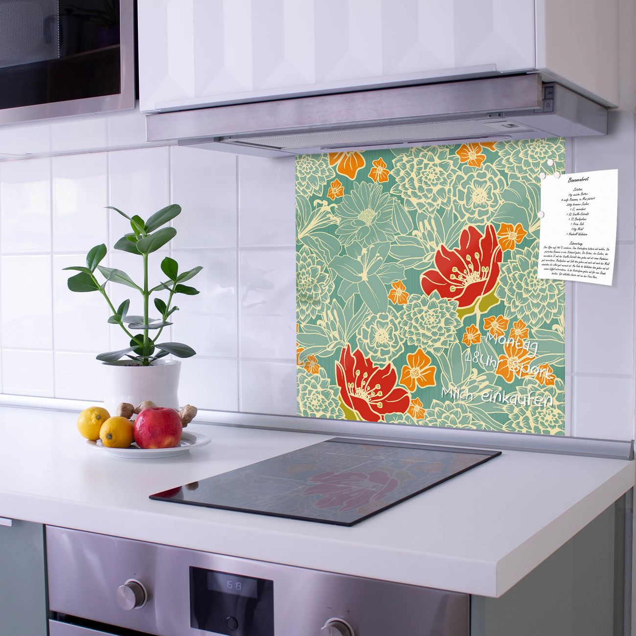 Die Küchenrückwand ist eine elegante Mehrzwecktafel: als Spritzschutz hinter Herd oder Waschbecken, hält Notizen wie ein Memoboard, ist beschreibbar mit Kreidestiften oder Whiteboard-Markern, sieht umwerfend als Glasbild aus. Sie besteht aus gehärtetem Glas, die Rückwand aus einem magnetischen Stahlblech. Durch die superflache Bauweise haben Sie die Wahl aus einer Vielzahl von Befestigungsmöglichkeiten. Sie können die Küchenrückwand mit einem Montagekleber superflach an die Wand kleben oder Sie wählen eines unserer passenden Befestigungssets, welches eine optimale Montage garantiert. Die Küchenrückwand besteht aus zertifiziertem Sicherheitsglas. Durch die mitgelieferten 4 Neodym-Magnete ist Ihre Glas Magnettafel sofort einsatzbereit.