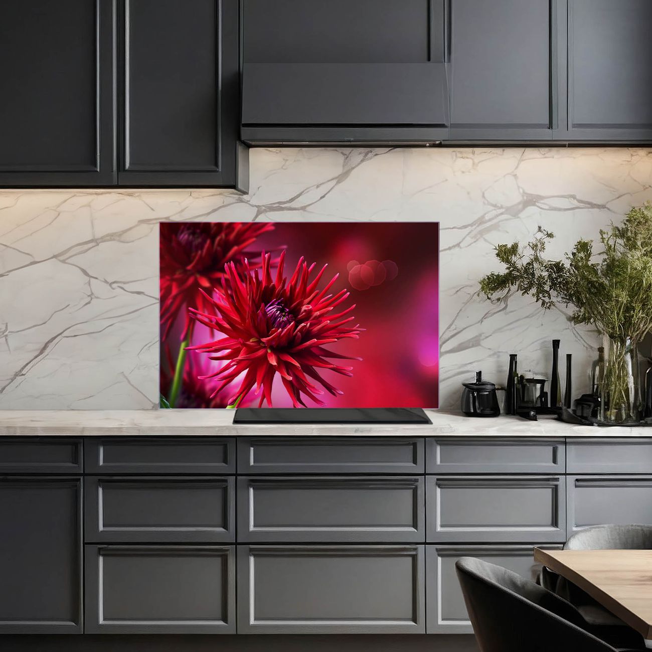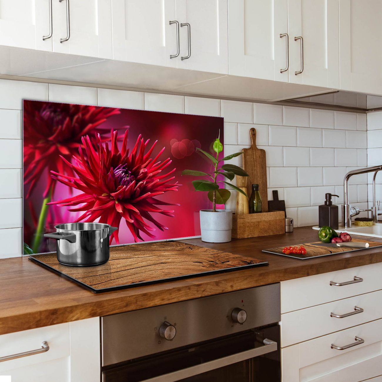 Küchenrückwand Glas Motiv Rote Dahlien