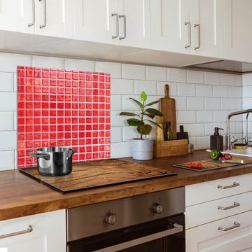 Die banjado Glas Küchenrückwand in verschiedenen Größen mit Motiv Rote Kacheln schützt Ihre Küchenfliesen vor Fettspritzern oder Wasserflecken. Der Spritzschutz ist gleichzeitig magnetisch und hält Ihre Rezepte oder Einkaufslisten. 4 Neodym-Magnete und 1 Kreidestift liegen bereits bei. Leuchtende Motive und hochwertiges Material machen den Spritzschutz zum Designobjekt. Das dekorative Glasbild gibt Ihrer Küche ein individuelles Erscheinungsbild. Abgerundete Kanten und Sicherheitsglas sorgen für einen sicheren Einsatz.