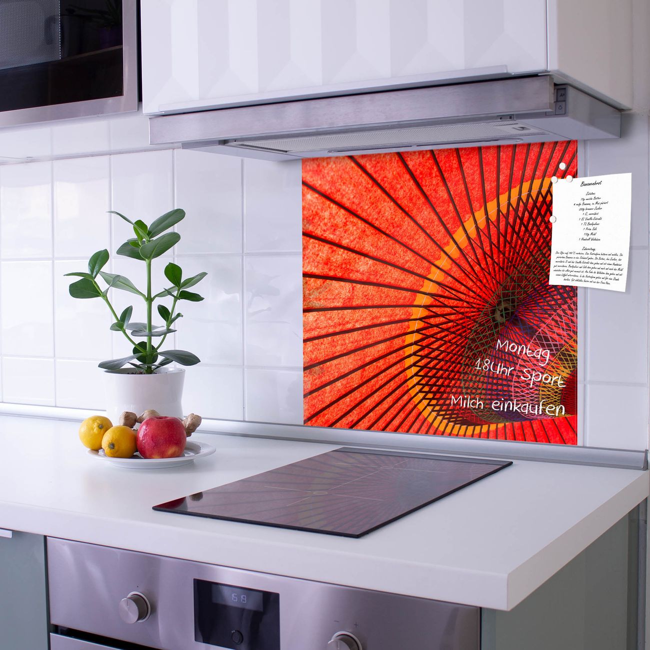 Die banjado Glas Küchenrückwand in verschiedenen Größen mit Motiv Roter Schirm schützt Ihre Küchenfliesen vor Fettspritzern oder Wasserflecken. Der Spritzschutz ist gleichzeitig magnetisch und hält Ihre Rezepte oder Einkaufslisten. 4 Neodym-Magnete und 1 Kreidestift liegen bereits bei. Leuchtende Motive und hochwertiges Material machen den Spritzschutz zum Designobjekt. Das dekorative Glasbild gibt Ihrer Küche ein individuelles Erscheinungsbild. Abgerundete Kanten und Sicherheitsglas sorgen für einen sicheren Einsatz.