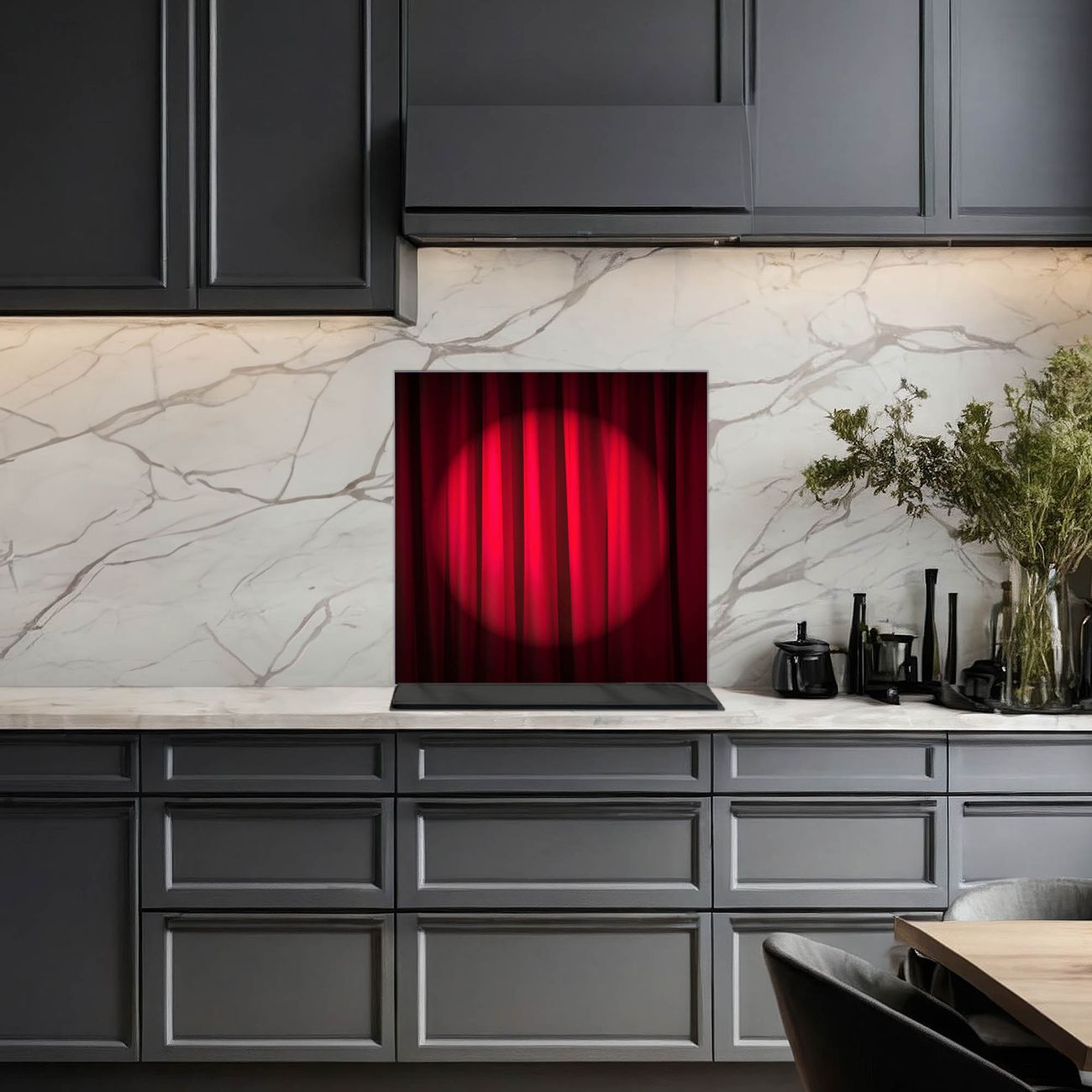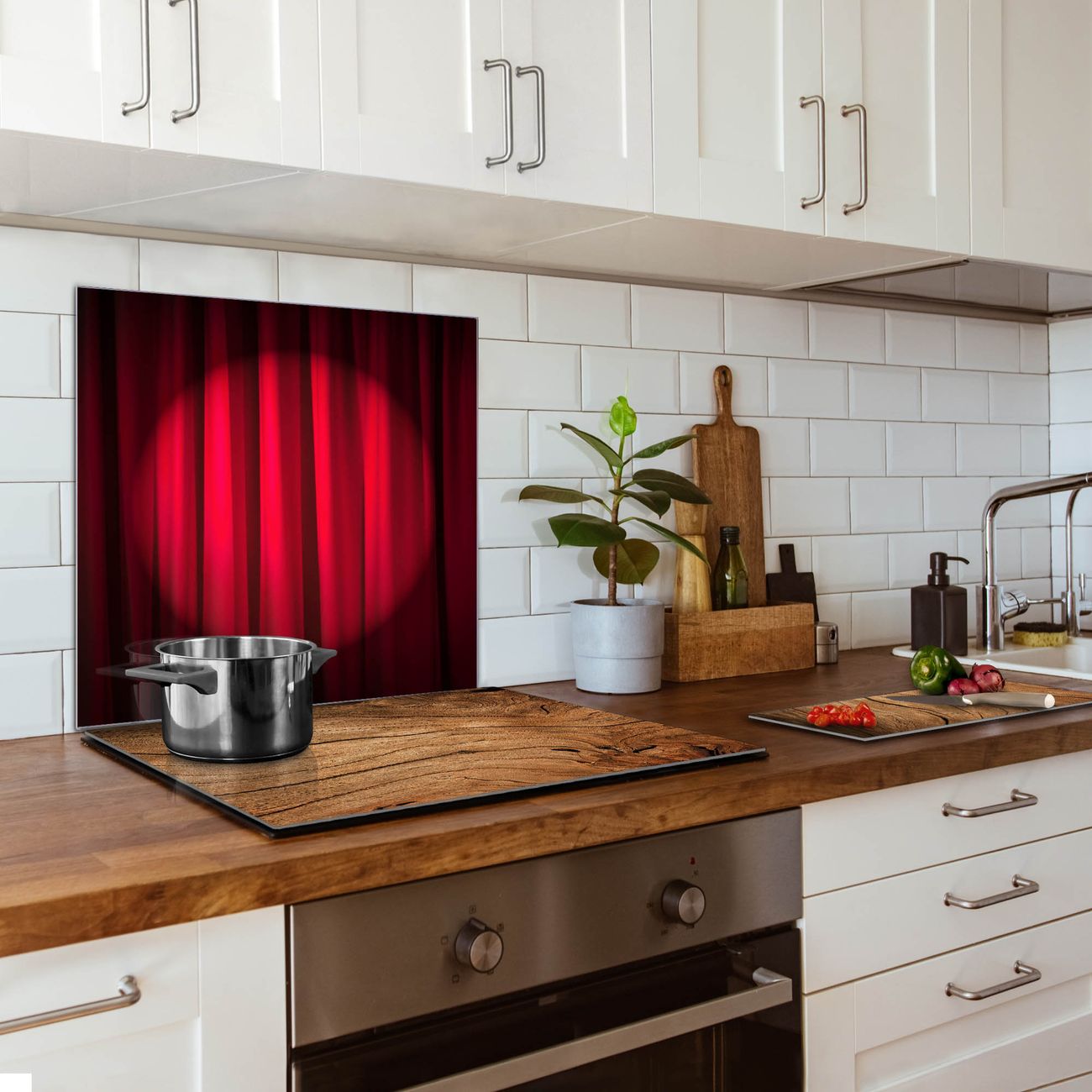 Küchenrückwand Glas Motiv Roter Vorhang